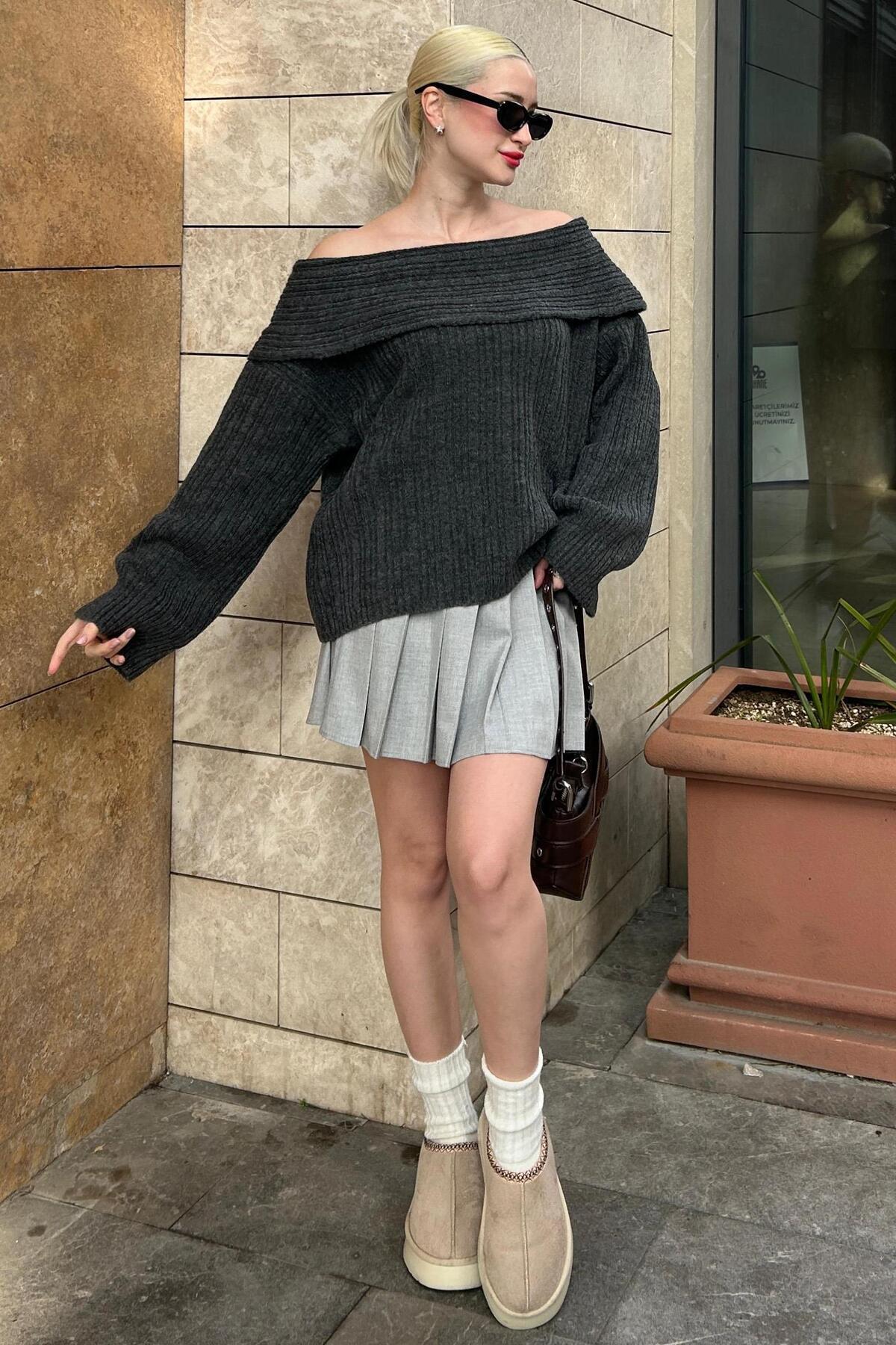 Antrasit Madonna Yaka Kadın Kazak MG2274 Antrasit Madonna Yaka Kadın Kazak MG2274 تک سایز
