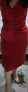 Atlas Kumaş Gül Detaylı Kalem Elbise - KIRMIZI Atlas Kumaş Gül Detaylı Kalem Elbise - KIRMIZI GYM-109 48