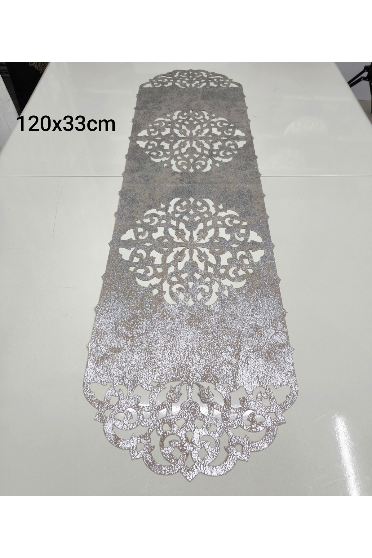 120x33cm Runner/gümüş Eskitme/ 120x33cm Runner/gümüş Eskitme/ ESKTMGLDRNNR تک سایز