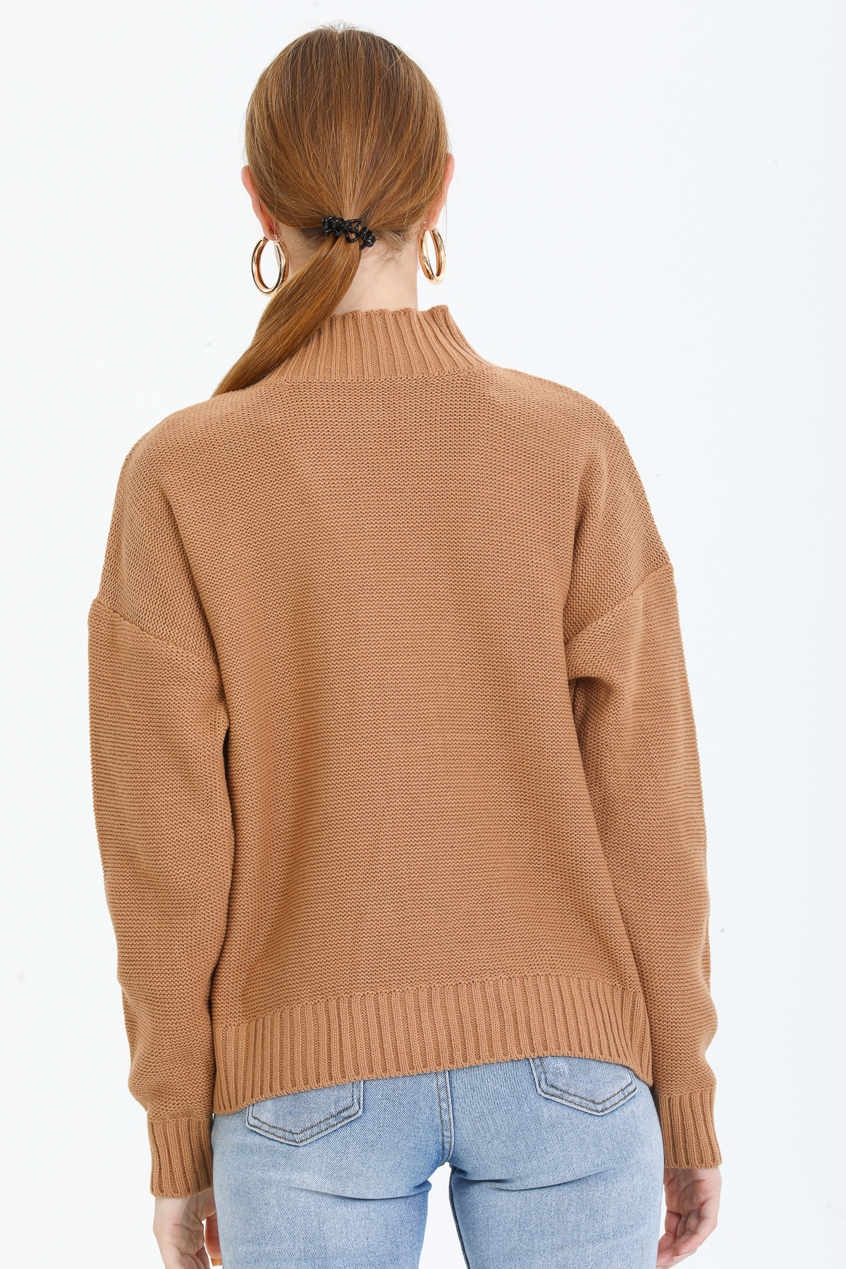Yarım Balıkçı Dik Yaka Links Saç Örgü Desenli Uzun Kollu Basic Kışlık Kalın Triko Kazak Yarım Balıkçı Dik Yaka Links Saç Örgü Desenli Uzun Kollu Basic Kışlık Kalın Triko Kazak ALCH-00123 Standart