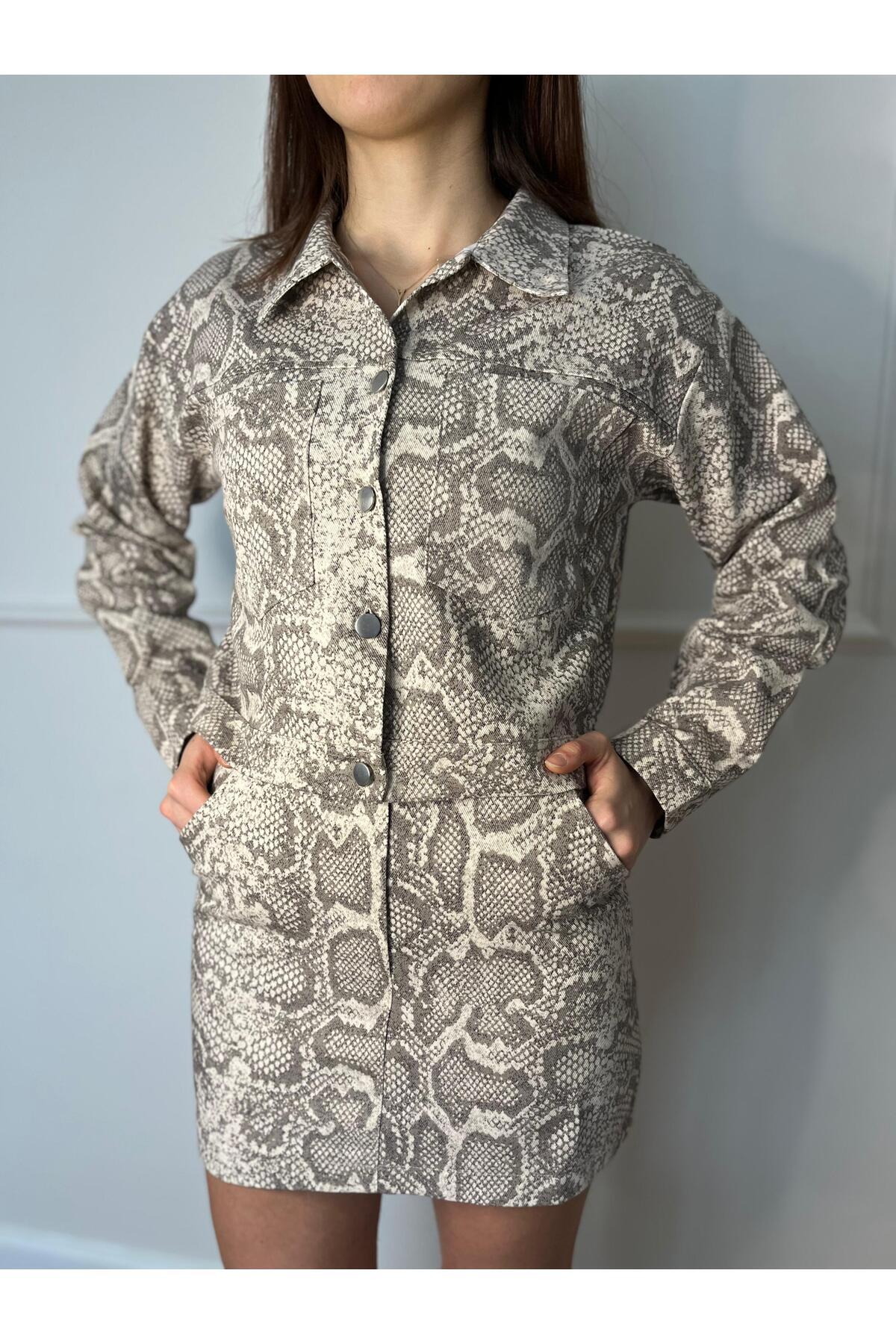 Kadın Ekru Yılan Desenli Gömlek Kadın Ekru Yılan Desenli Gömlek Yılangömlek L
