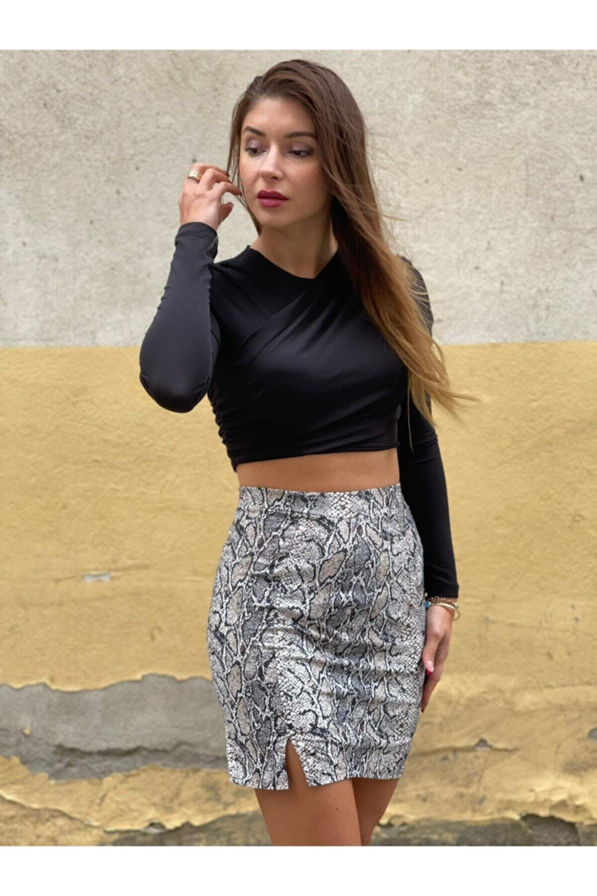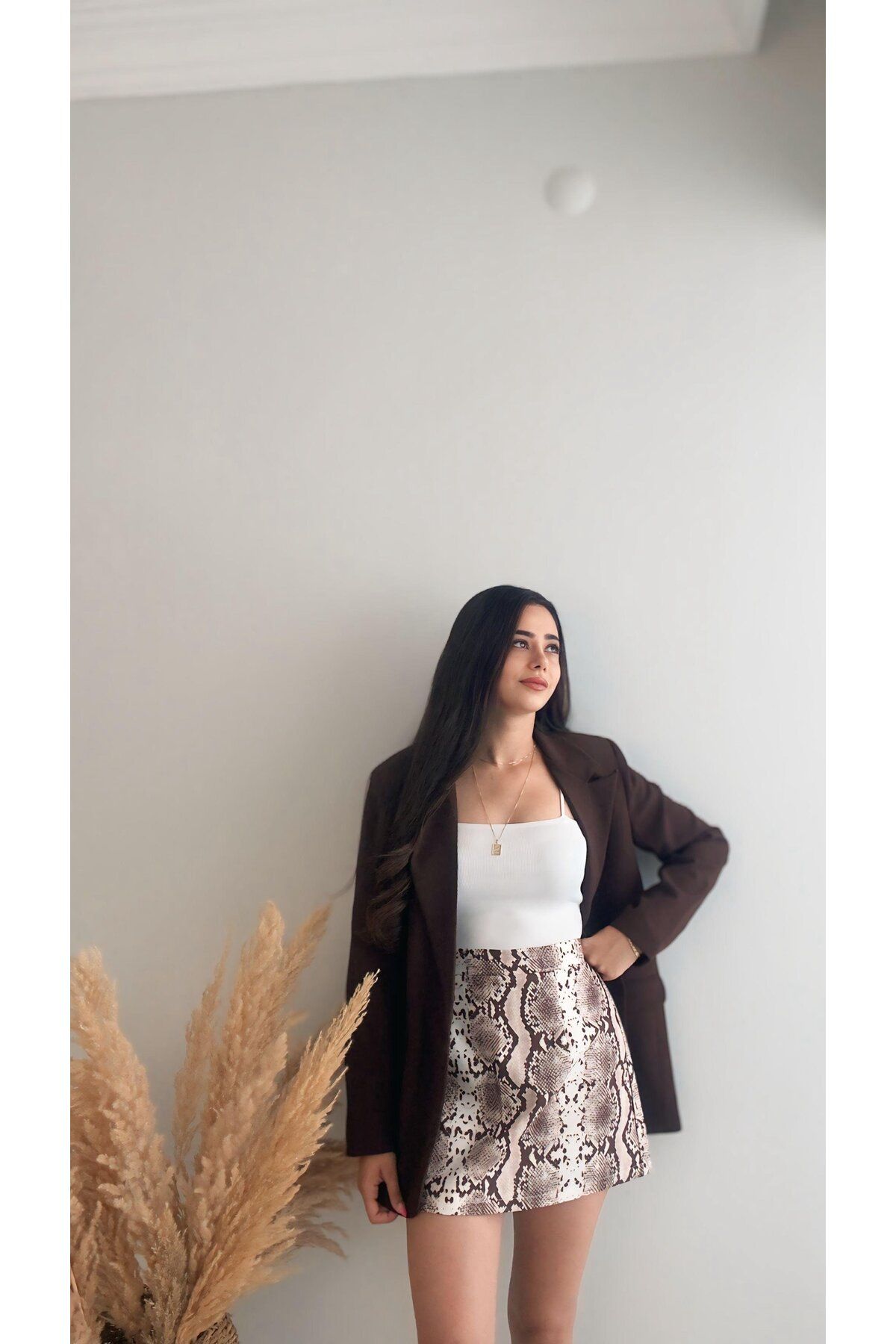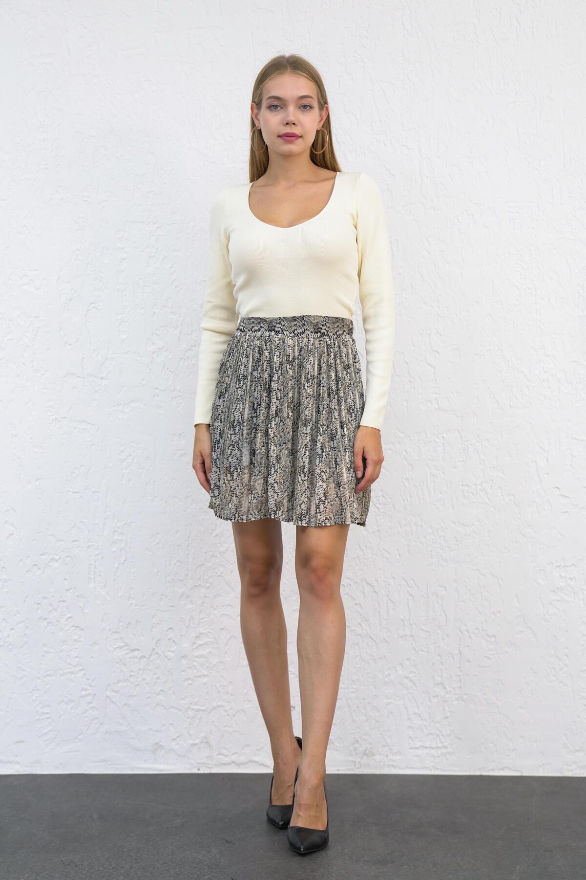 Kadın Ekru Yılan Desenli Cepli Etek Kadın Ekru Yılan Desenli Cepli Etek Yılanetek L
