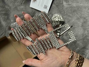 Kadın 8 Sıra Tokalı Model Gümüş Kristal Zirkon Taşlı Abiye Elbise Pantolon Etek Düğün Parti Kemer Kadın 8 Sıra Tokalı Model Gümüş Kristal Zirkon Taşlı Abiye Elbise Pantolon Etek Düğün Parti Kemer FR56 Stone Women's Belt Evening Dress S/M