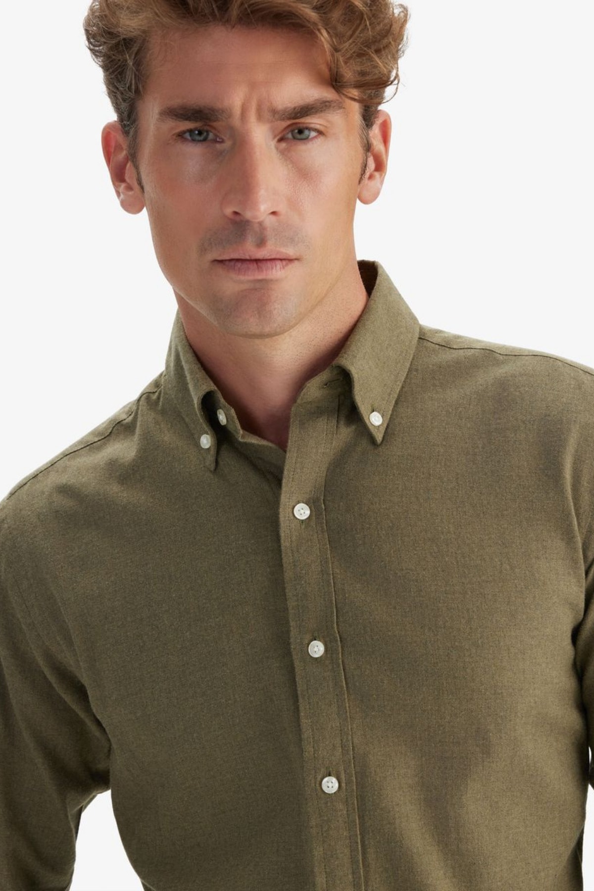 HAKİ-SLİM FİT Pamuk Keten Doku Erkek Gömlek HAKİ-SLİM FİT Pamuk Keten Doku Erkek Gömlek KPY 2XL