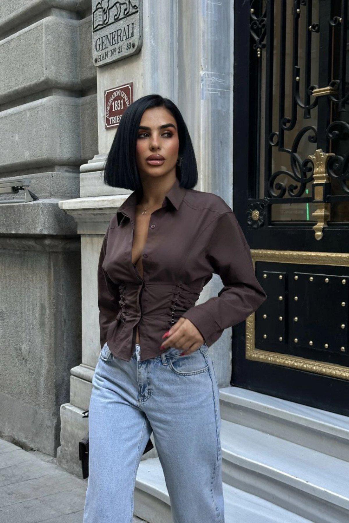 Bağlama Detaylı Tasarım Gömlek Bağlama Detaylı Tasarım Gömlek BLZ0172 L