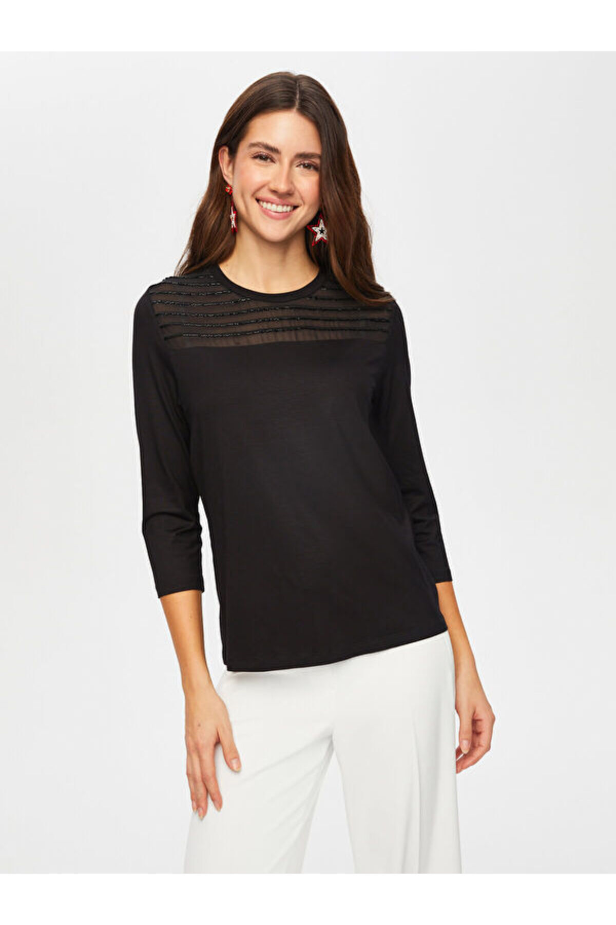 Boncuk İşli Transparan Detaylı 3/4 Kol Örme Bluz 043 Boncuk İşli Transparan Detaylı 3/4 Kol Örme Bluz 043 US25BLZ043 XL
