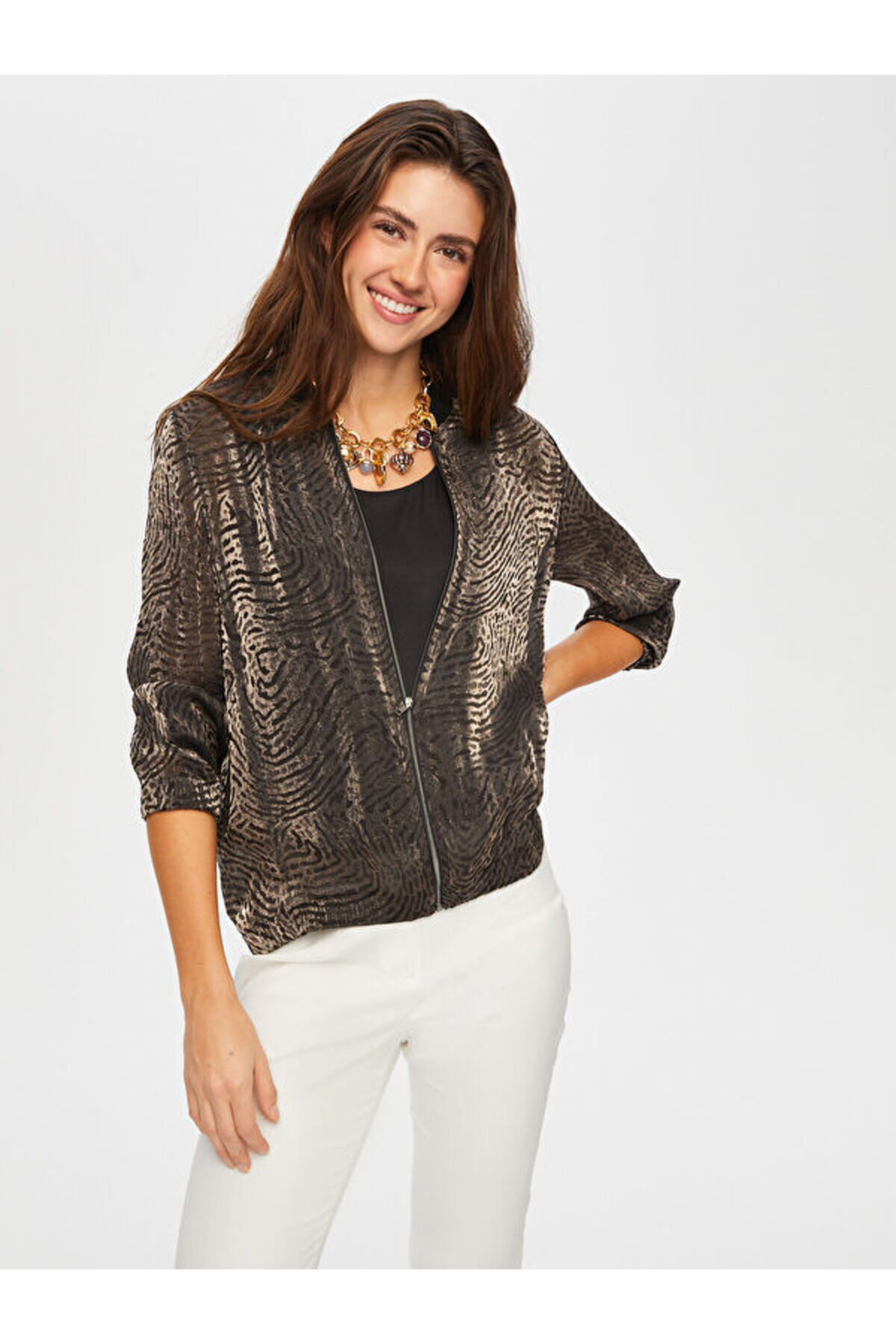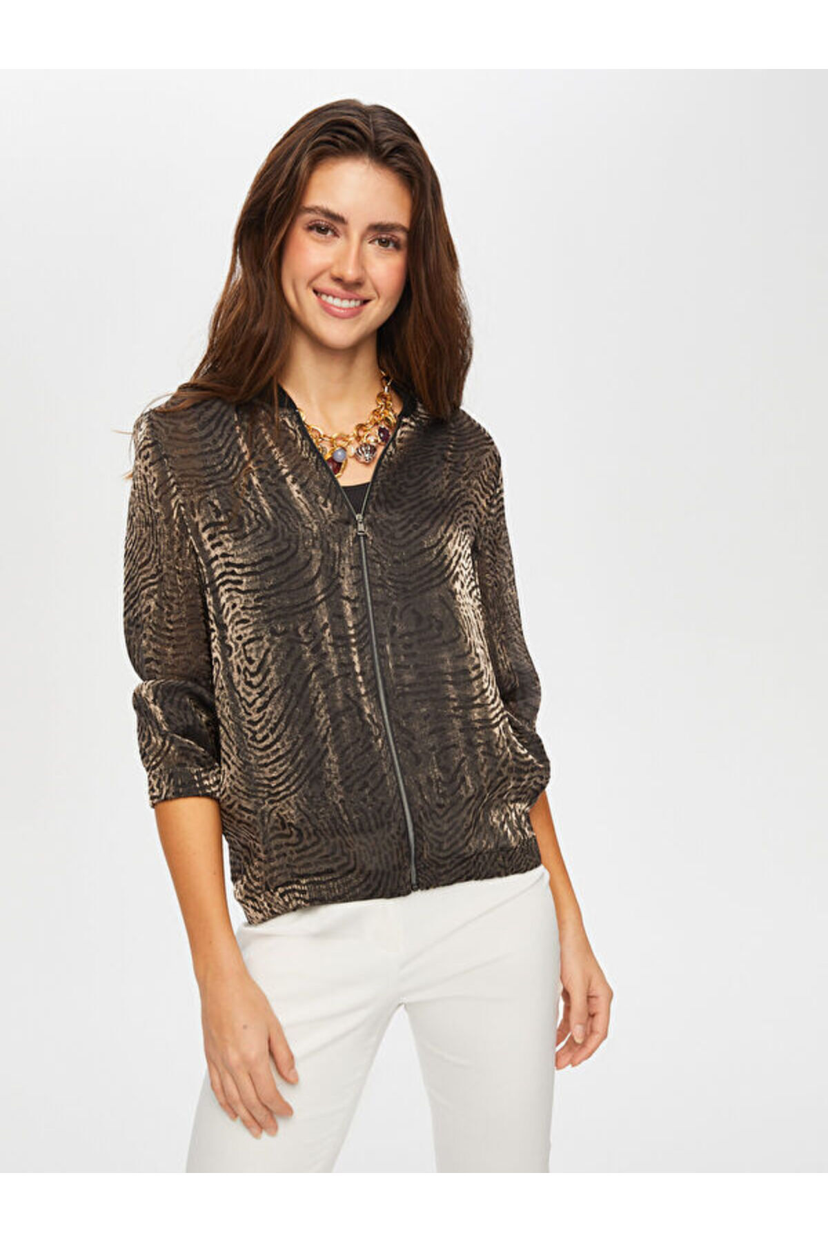 Ribana Yakalı Kendinden Jakarlı Bomber Ceket S25BMB004 Ribana Yakalı Kendinden Jakarlı Bomber Ceket S25BMB004 US25BMB004 XL