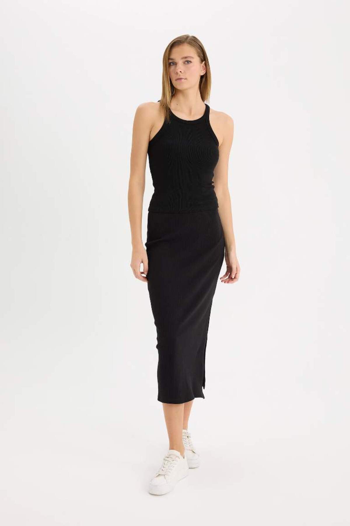 Fitted Vücudu Saran Yırtmaçlı Basic Düz Fitilli Kaşkorse Siyah Midi Etek E2247AX25SP Fitted Vücudu Saran Yırtmaçlı Basic Düz Fitilli Kaşkorse Siyah Midi Etek E2247AX25SP 2XL