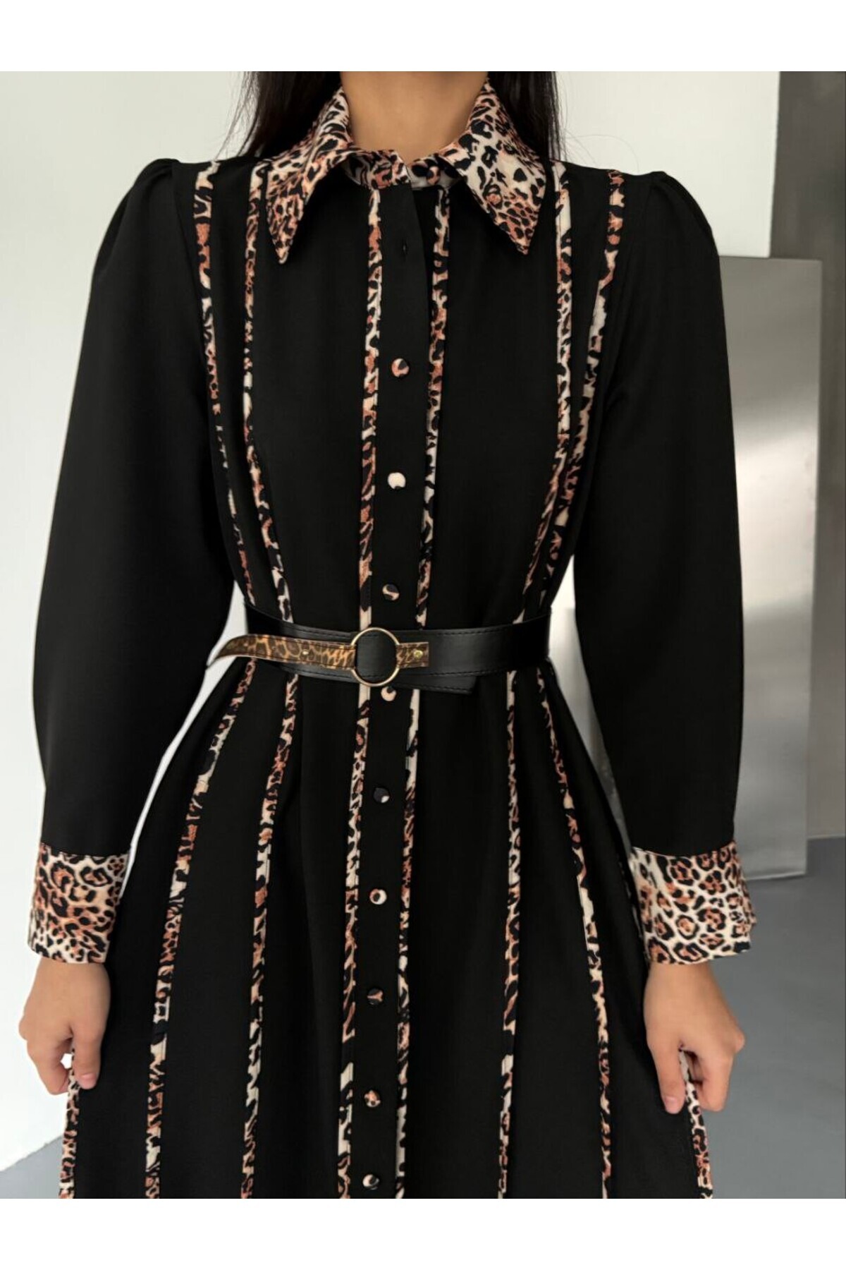 Leopar Biyeli Kemerli Elbise 3930 Siyah Leopar Biyeli Kemerli Elbise 3930 Siyah 48