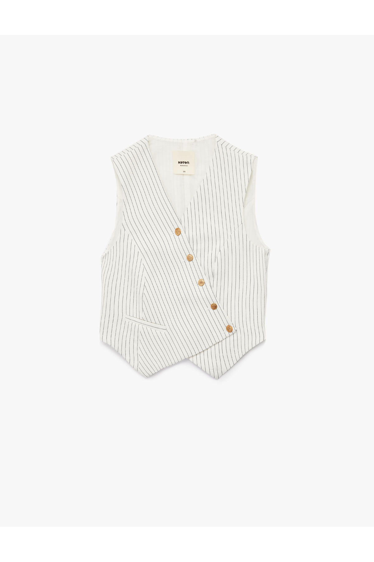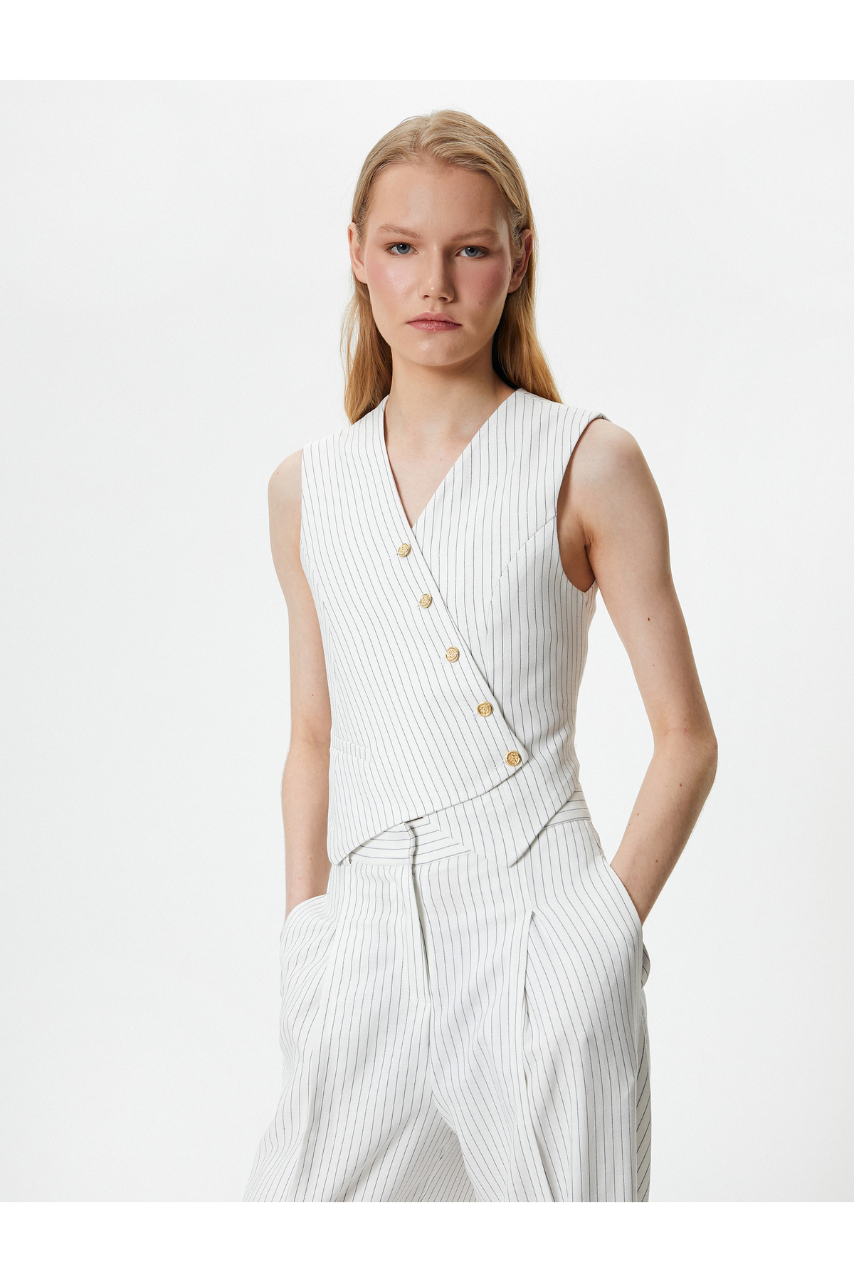 Asimetrik V Yaka Çizgili Blazer Yelek Asimetrik V Yaka Çizgili Blazer Yelek 5SAK20017UW 42