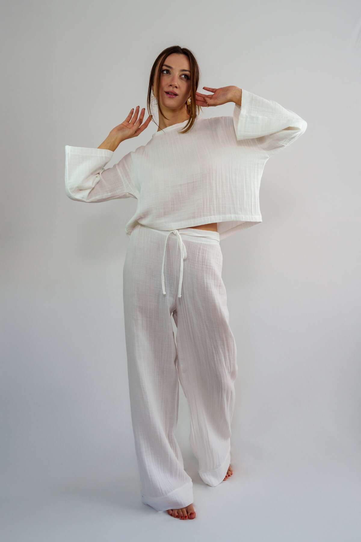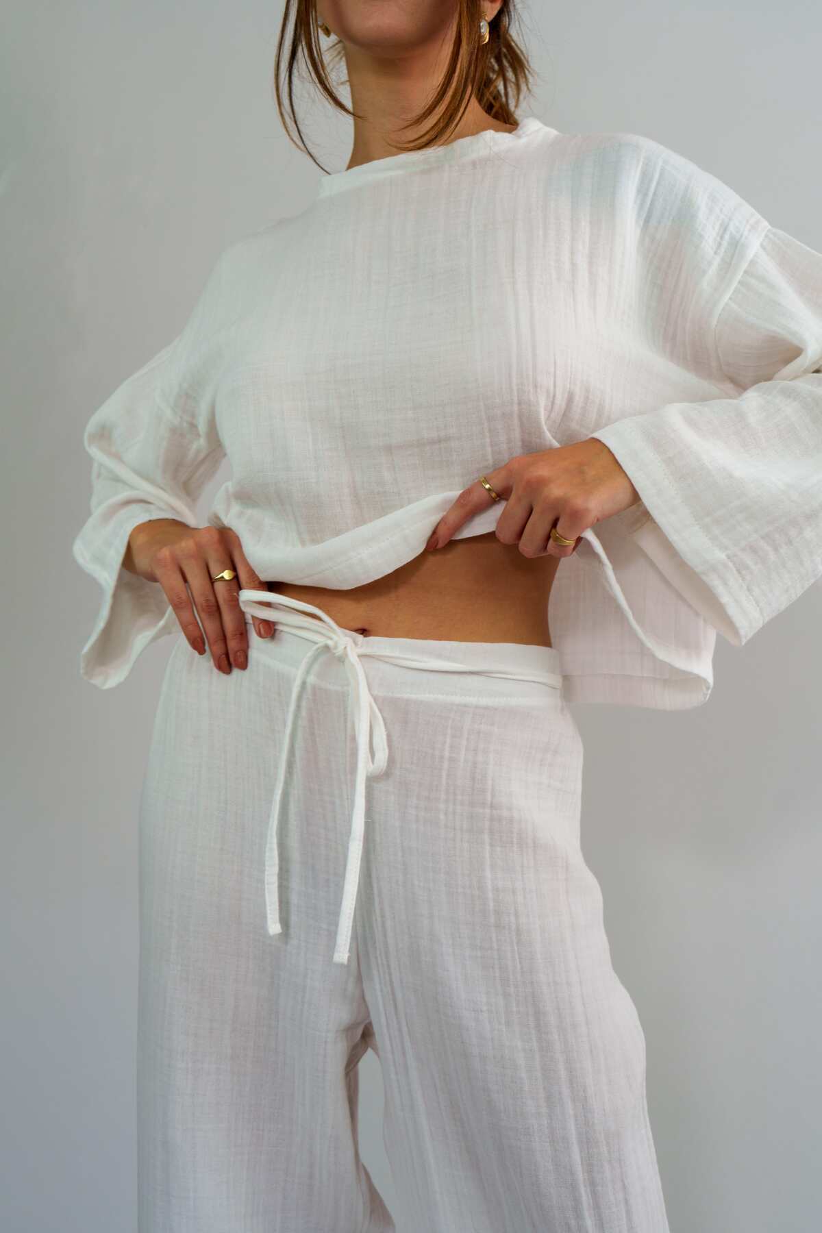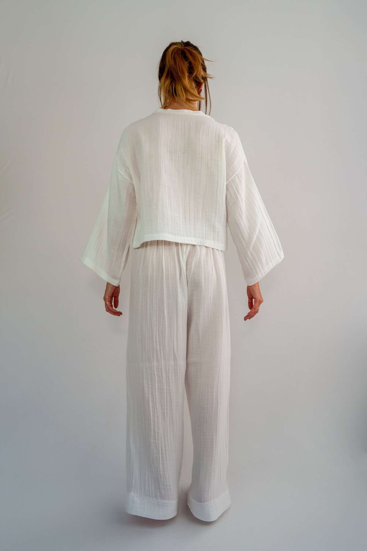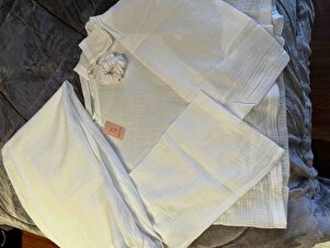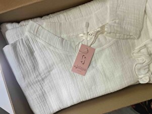 Rosa Beyaz Müslin Oversize Pijama Takımı Rosa Beyaz Müslin Oversize Pijama Takımı JLP-0003 XL
