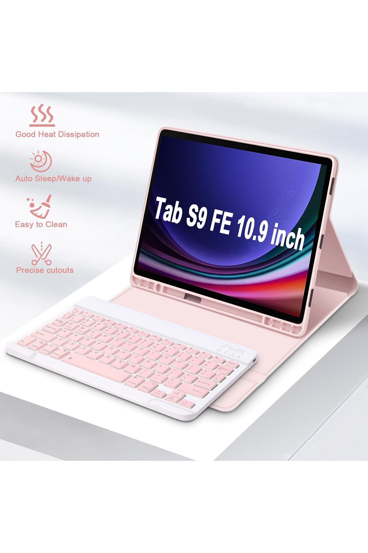 Samsung Galaxy Tab S9 Fe 10.9" Q Türkçe Klavyeli Kılıf Kalem Bölmeli Bluetooth Özellikli Standlı Samsung Galaxy Tab S9 Fe 10.9" Q Türkçe Klavyeli Kılıf Kalem Bölmeli Bluetooth Özellikli Standlı TKN-S9FE-KLAVYELI-KILIF-AHM تک سایز
