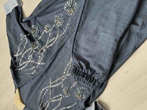 Kadın Önü Pul Payet Nakışlı Taş Ve İnci Detaylı Keten Kimono Ve Pantolon Alt Üst Takım Kadın Önü Pul Payet Nakışlı Taş Ve İnci Detaylı Keten Kimono Ve Pantolon Alt Üst Takım 420 S