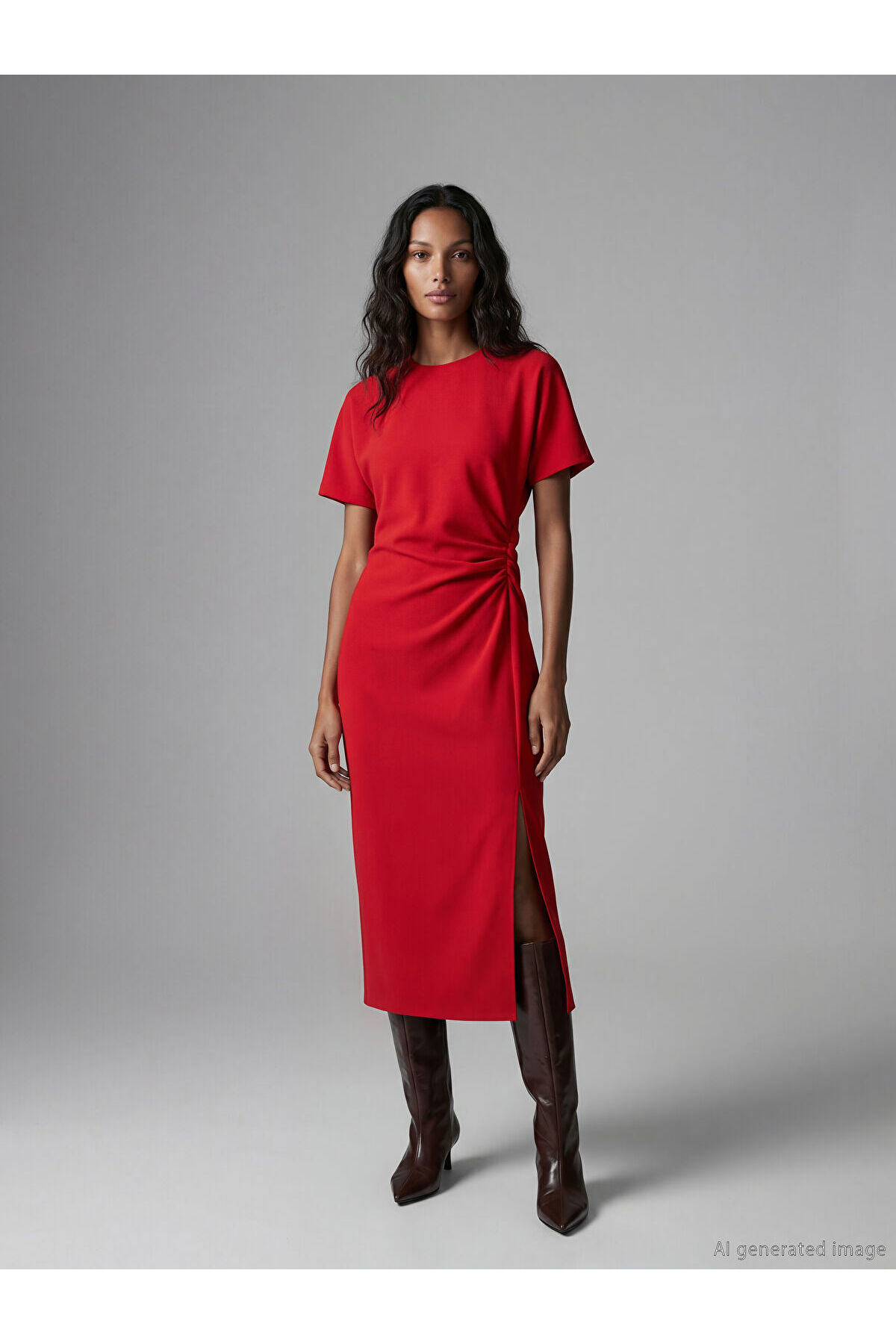Arkadan çapraz detaylı yuvarlak yakalı uzun viskon elbise Arkadan çapraz detaylı yuvarlak yakalı uzun viskon elbise 61101SIYAH 2XL/3XL