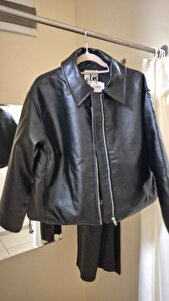 Klasik Yaka Fermuarlı Deri Görünümlü Cep Detaylı Ceket Klasik Yaka Fermuarlı Deri Görünümlü Cep Detaylı Ceket 5WAL20084IW 42