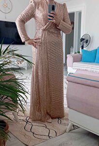 Volan Detaylı Payet Tesettür Abiye Elbise KAMEL 1677 Volan Detaylı Payet Tesettür Abiye Elbise KAMEL 1677 54