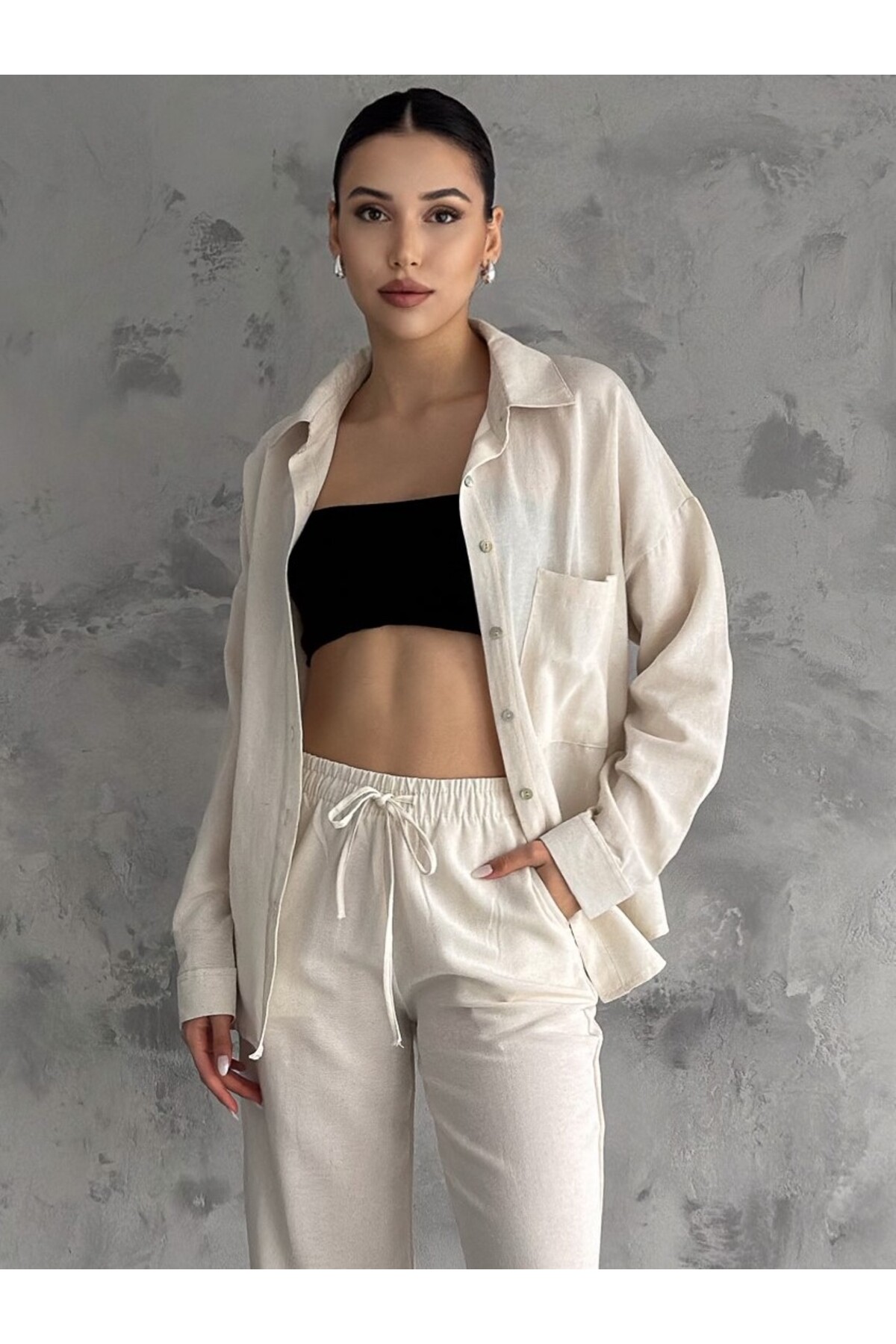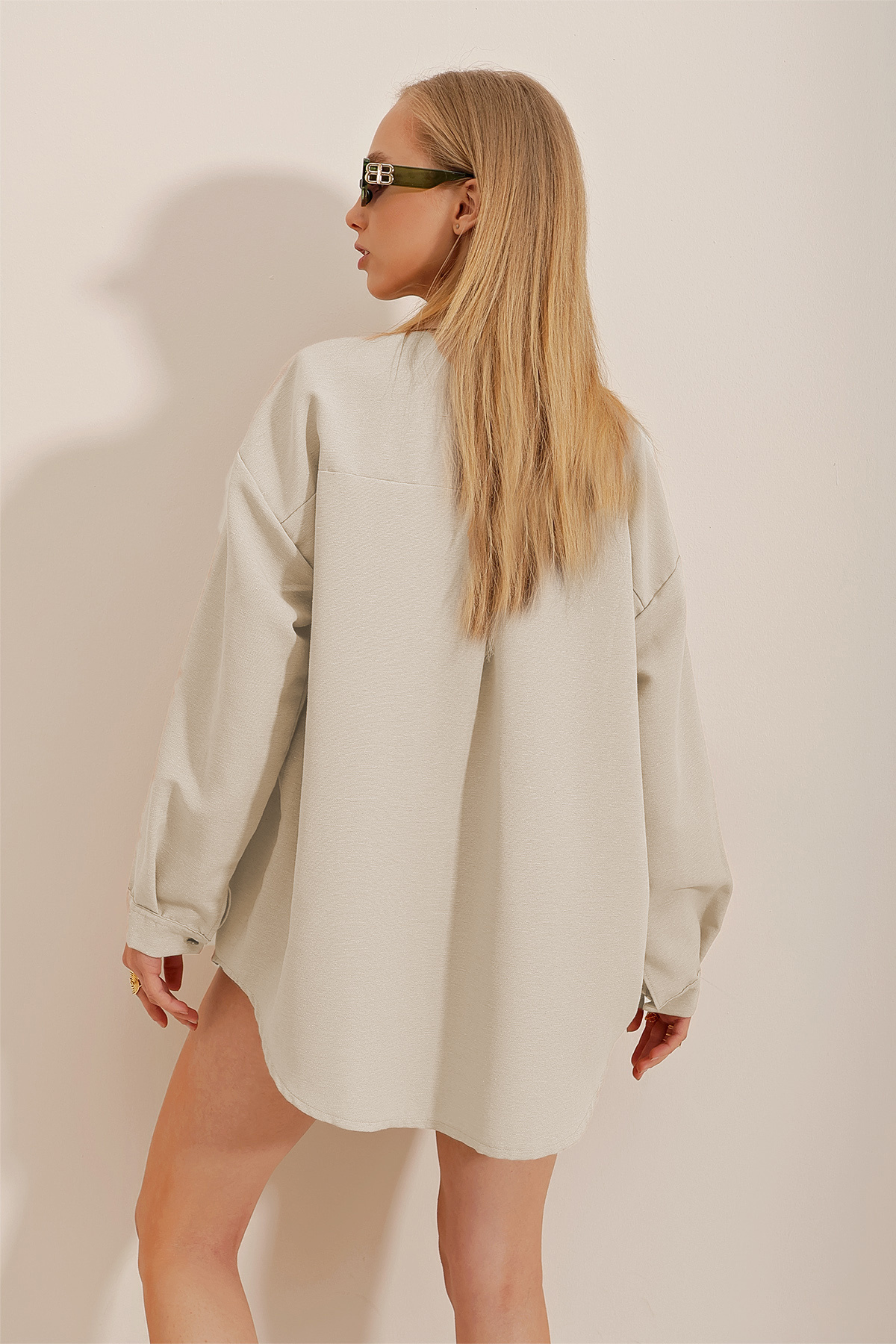 Kadın Bej Oversize Keten Gömlek Kadın Bej Oversize Keten Gömlek GÖMLEK01 L