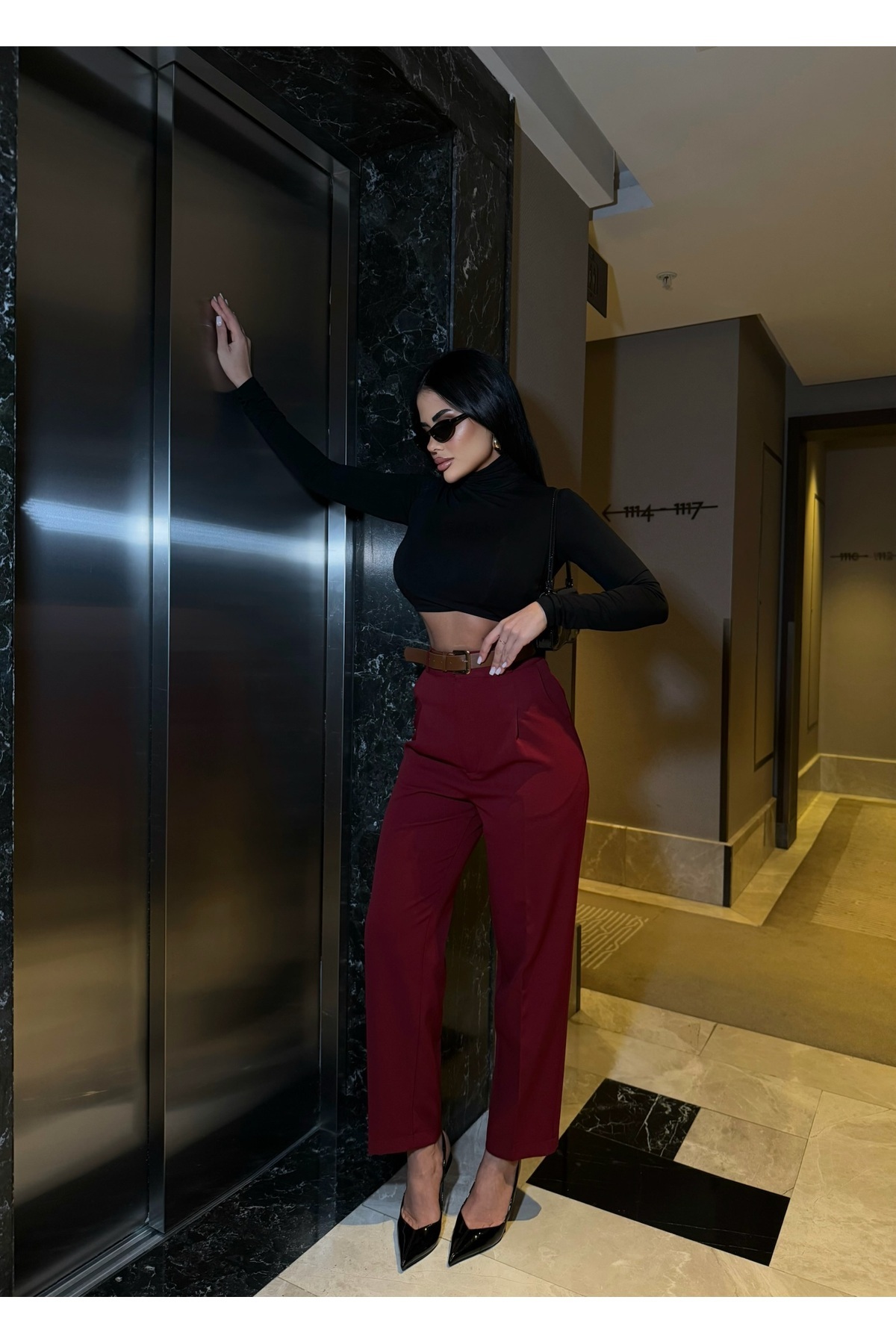 Kadın Bordo Yüksek Bel Kemerli Havuç Pantolon Kadın Bordo Yüksek Bel Kemerli Havuç Pantolon Laluna1049HPV L