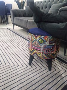 Gürgen Retro Ahşap Ayaklı Dekoratif Etnik Üst Lacivert Desenli Silindir Puf Gürgen Retro Ahşap Ayaklı Dekoratif Etnik Üst Lacivert Desenli Silindir Puf Dekoratif Ahşap Puf Rustik Bench تک سایز