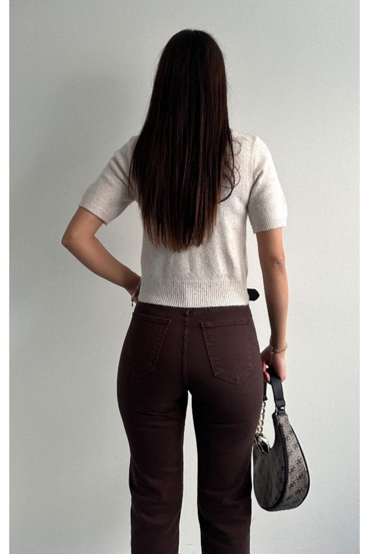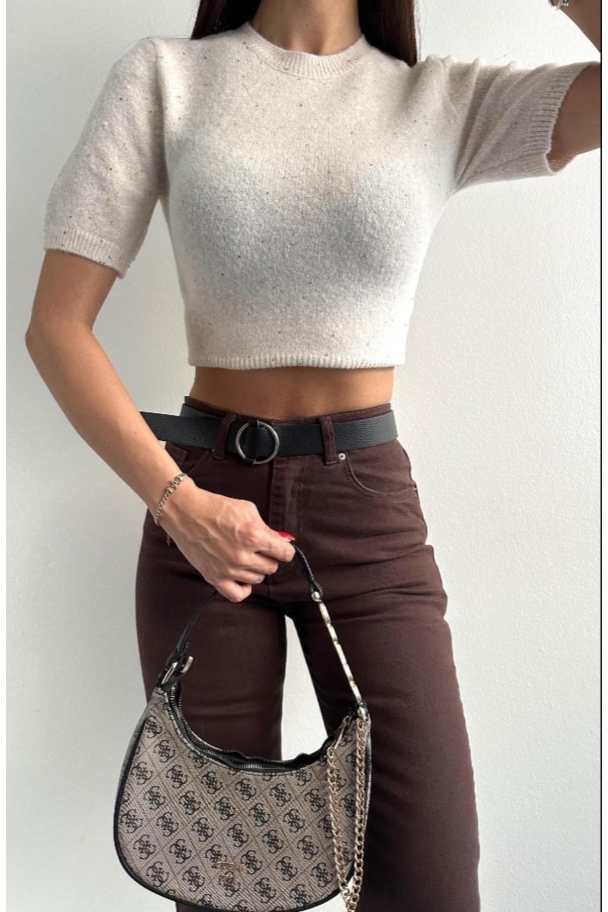 Bisiklet Yaka Pullu Simli Kazak Krem Bisiklet Yaka Pullu Simli Kazak Krem 2372 Standart