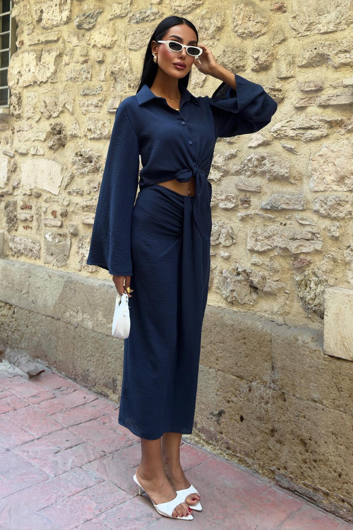 Siyah Triko Kumaş Boğazlı Crop Bluz ve Midi Boy Aksesuarlı Etek İkili Takım 336 Siyah Triko Kumaş Boğazlı Crop Bluz ve Midi Boy Aksesuarlı Etek İkili Takım 336 4S1B-ETC-336 L