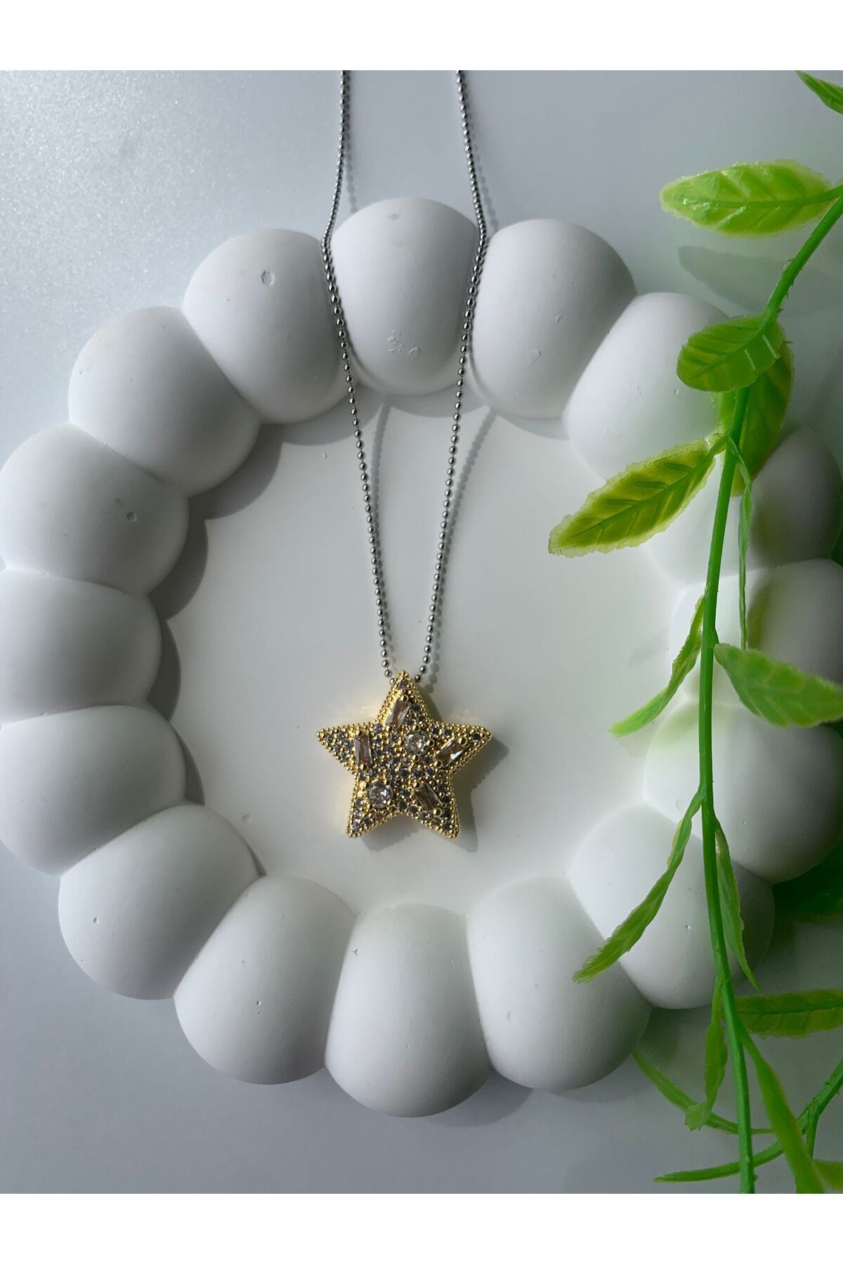 925 Ayar Mineli Yıldız Motifli Gümüş Kolye 925 Ayar Mineli Yıldız Motifli Gümüş Kolye 2025DGKLY007 45 cm