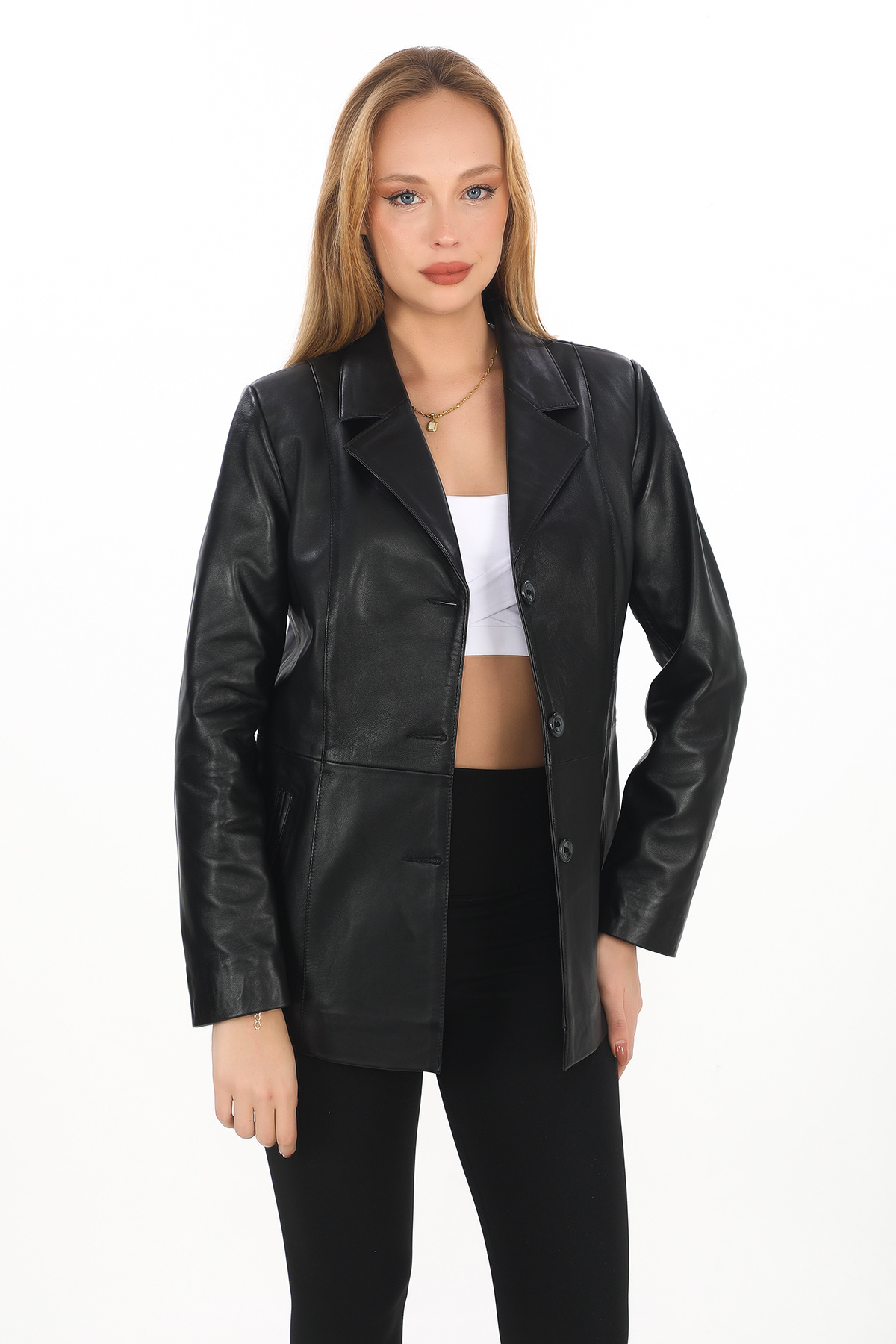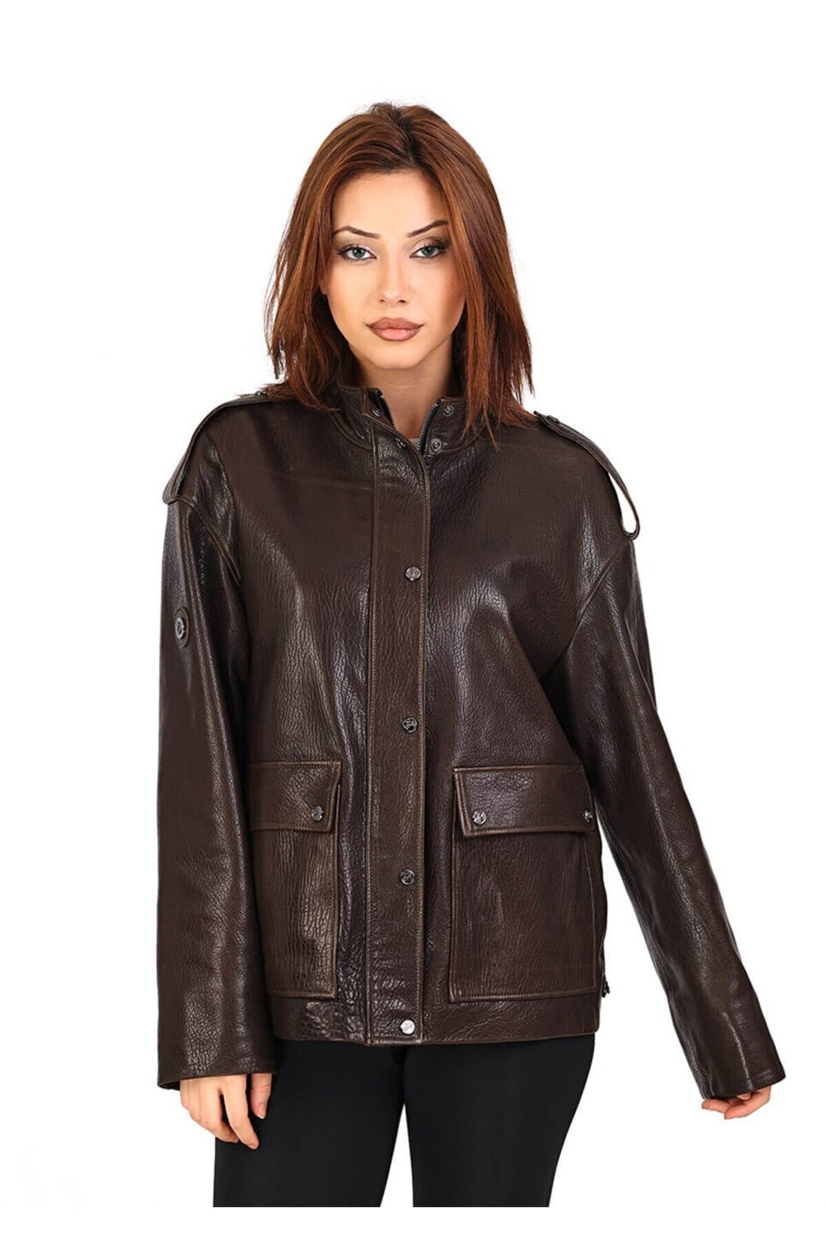 Kadın Düğmeli Hakiki Deri Ceket Kadın Düğmeli Hakiki Deri Ceket KadınCeket 5XL
