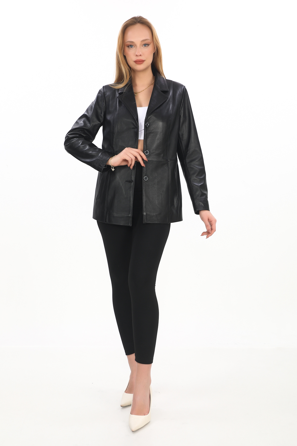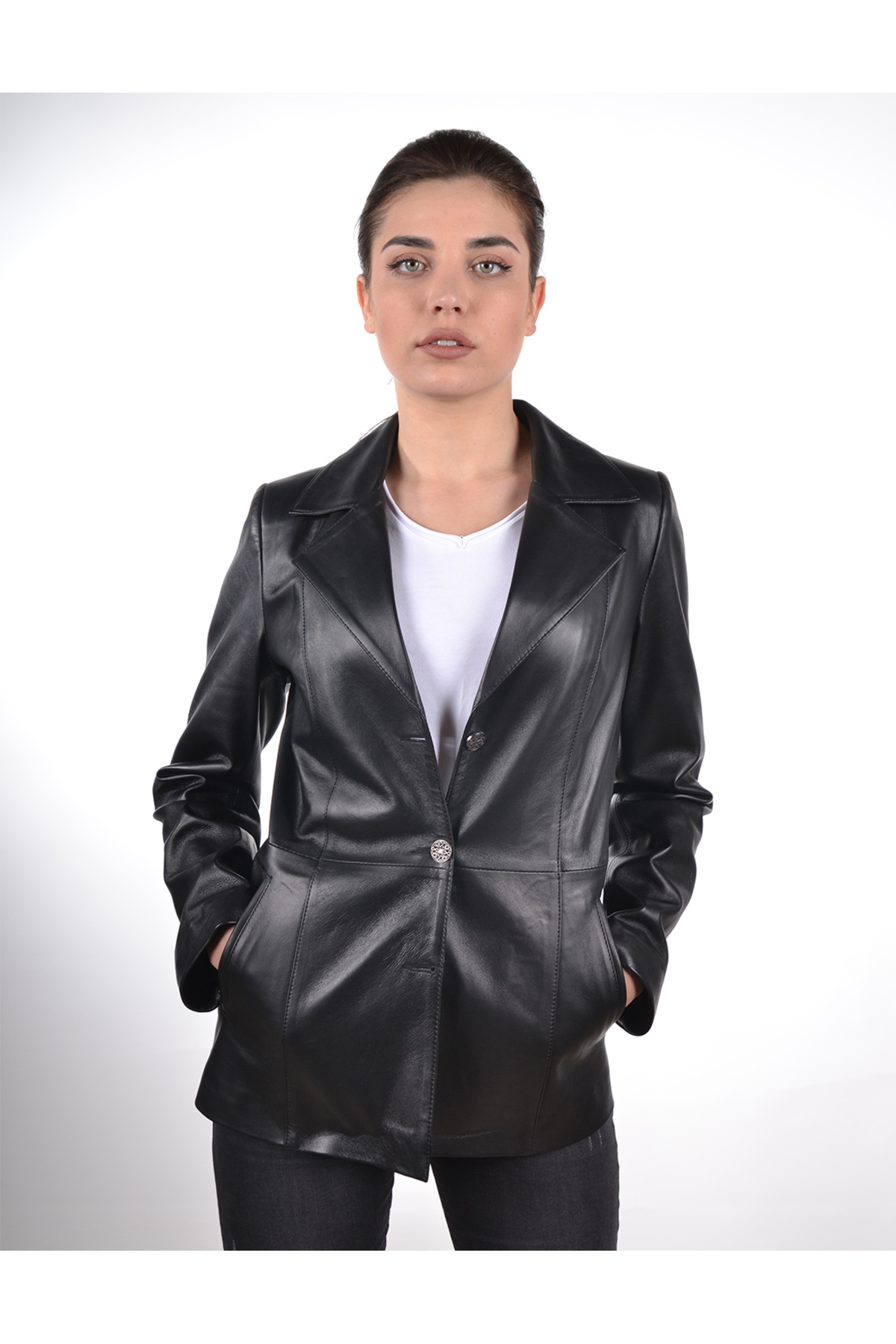 Kadın Düğmeli Hakiki Deri Ceket Kadın Düğmeli Hakiki Deri Ceket KadınCeket 5XL