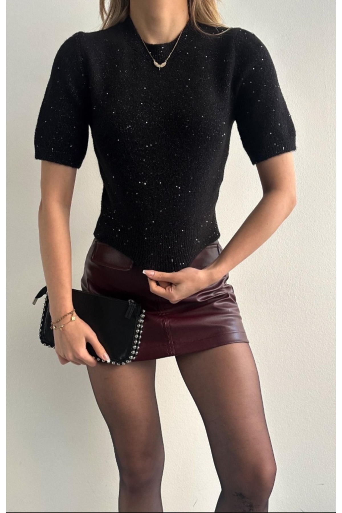 Bisiklet Yaka Pullu Simli Kazak Siyah Bisiklet Yaka Pullu Simli Kazak Siyah 2372 Standart