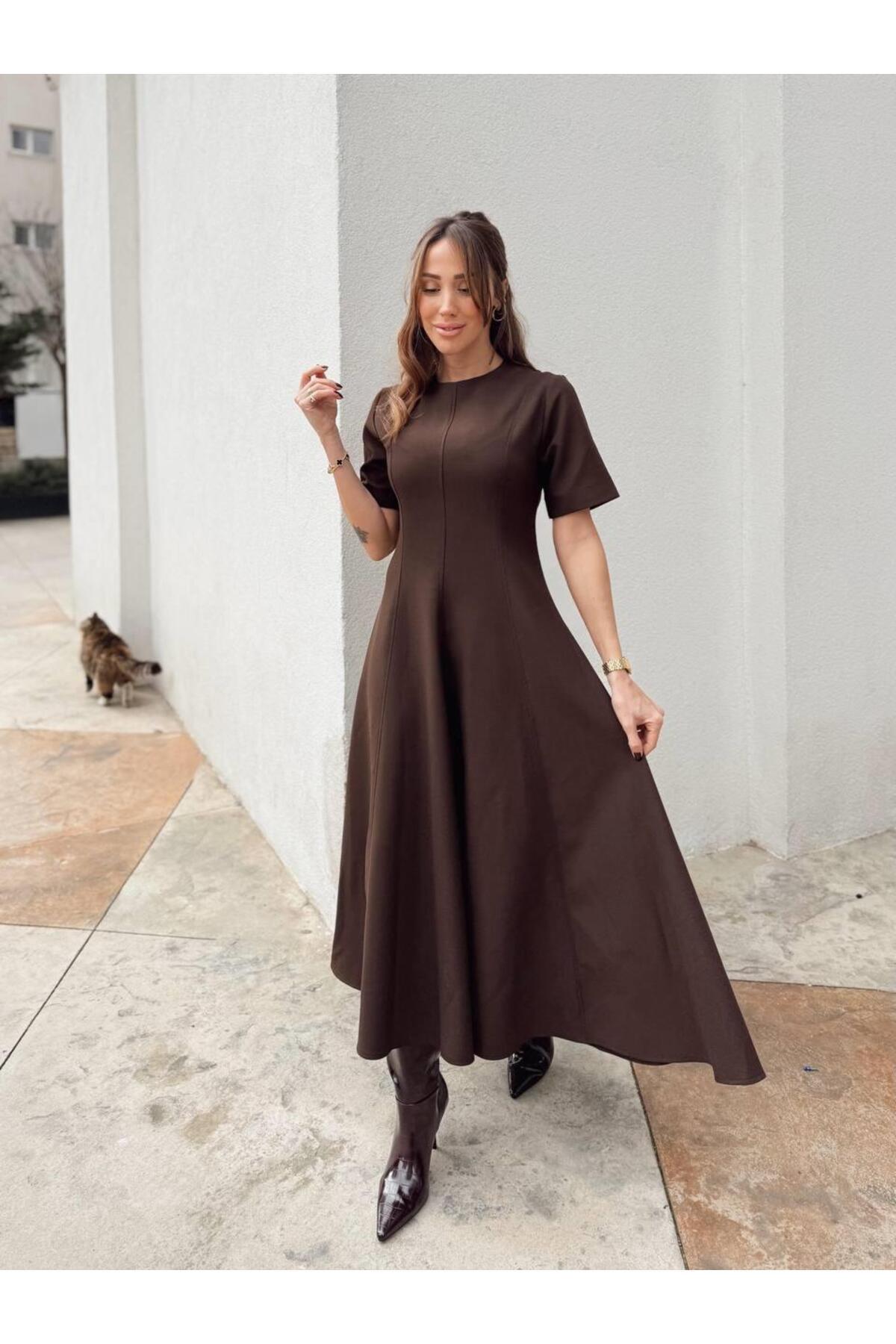 Kadın Maxi Boy Kloş Prenses Kahverengi Elbise Kadın Maxi Boy Kloş Prenses Kahverengi Elbise 25YE5174 L