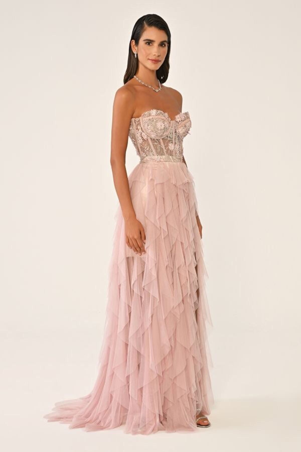 STRAPLEZ FIRFIR VE YIRTMAÇ DETAYLI UZUN TÜL ABİYE PARTY ELBİSESİ STRAPLEZ FIRFIR VE YIRTMAÇ DETAYLI UZUN TÜL ABİYE PARTY ELBİSESİ 6817 46
