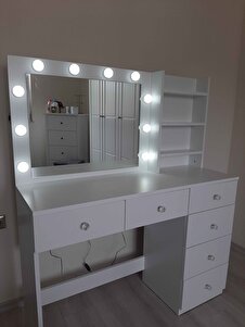 Rani BJ127 Hollywood Işıklı Aynalı Kulis Makyaj Masası 6 Çekmeceli Takı Düzenleyici Beyaz Rani BJ127 Hollywood Işıklı Aynalı Kulis Makyaj Masası 6 Çekmeceli Takı Düzenleyici Beyaz 3431 تک سایز