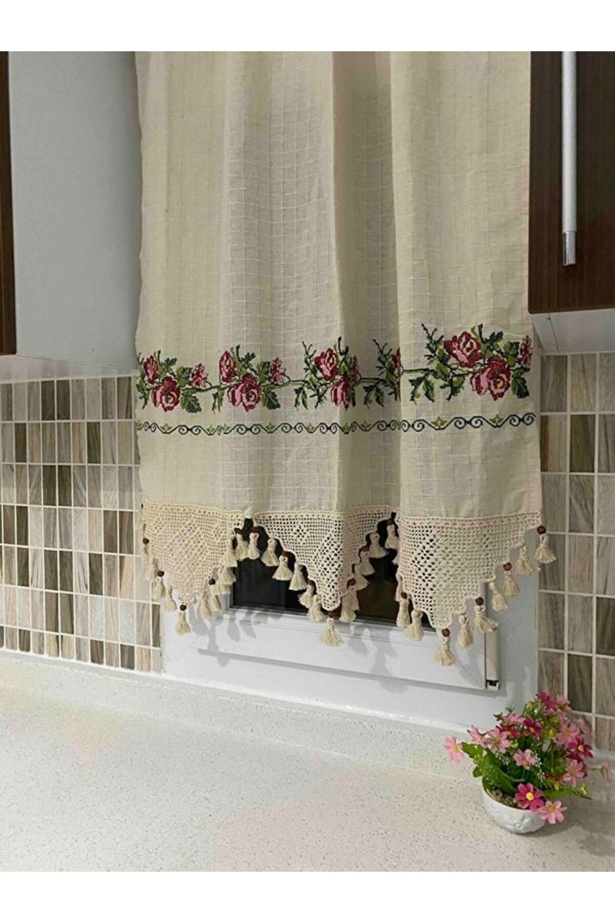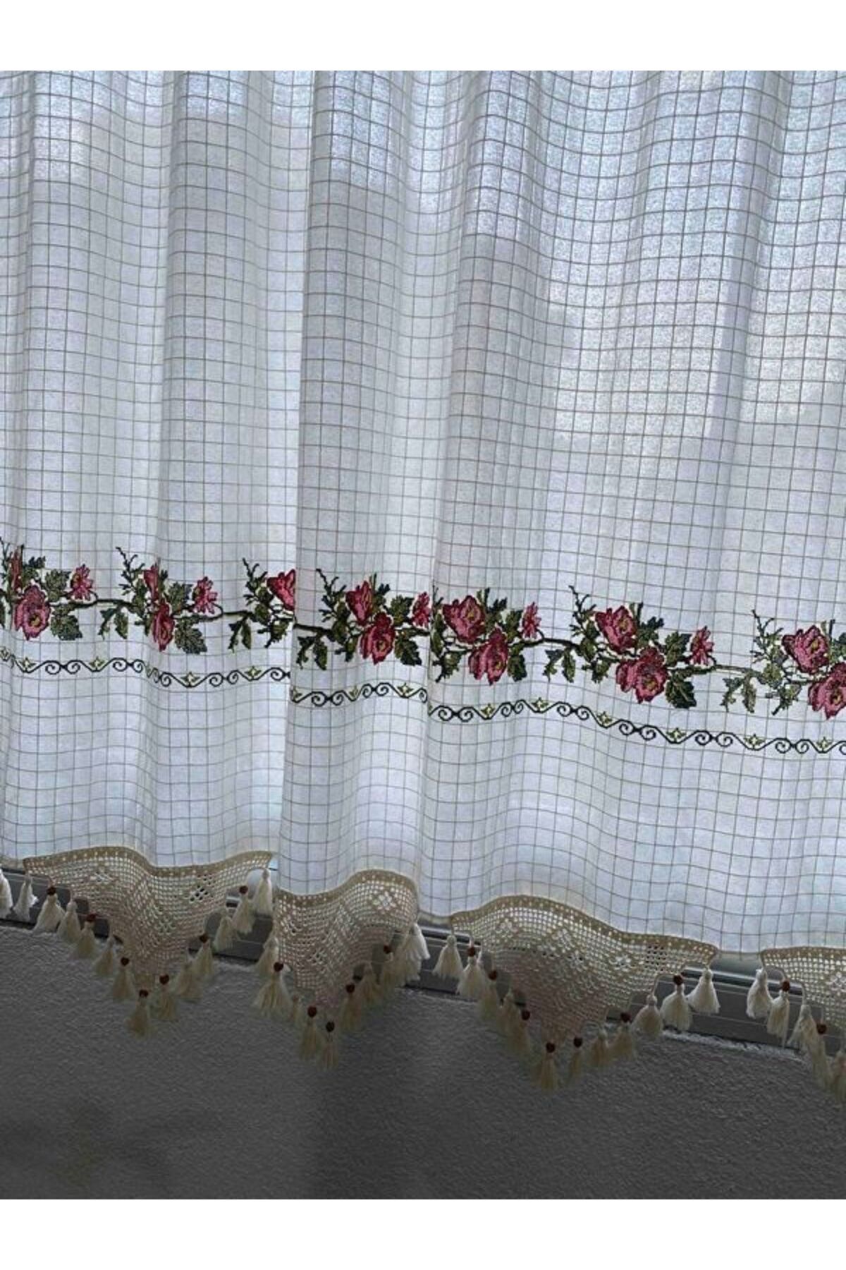 Kanaviçeli Buldan İşi Kanaviçe El Dantelli Kanaviçeli Keten Perde Kanaviçeli Buldan İşi Kanaviçe El Dantelli Kanaviçeli Keten Perde FN-155810 500 x 180