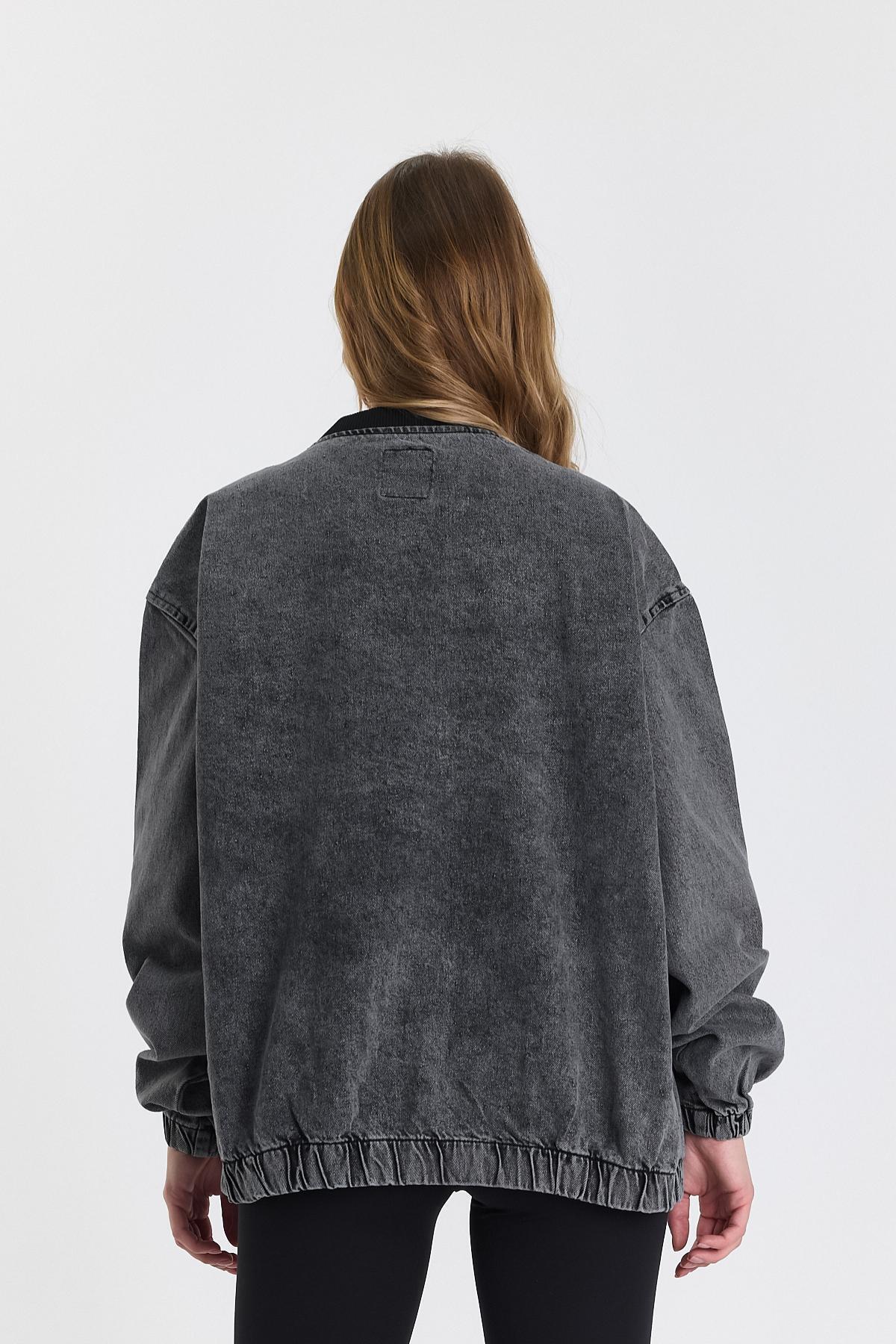 Kadın Jeans Fermuarlı Antrasit Kot Kolej Ceket Kadın Jeans Fermuarlı Antrasit Kot Kolej Ceket 1291DMJG 2XL