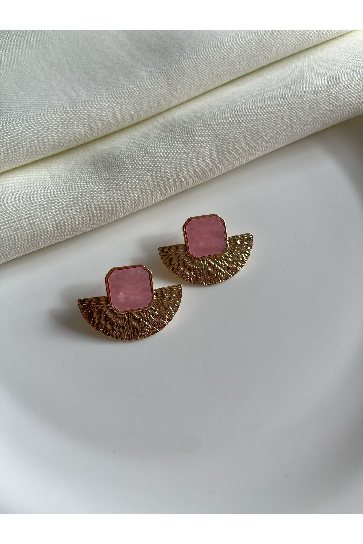 Metal Ezme Plaka Mineli Yelpaze Küpe Metal Ezme Plaka Mineli Yelpaze Küpe NLS17080109 تک سایز