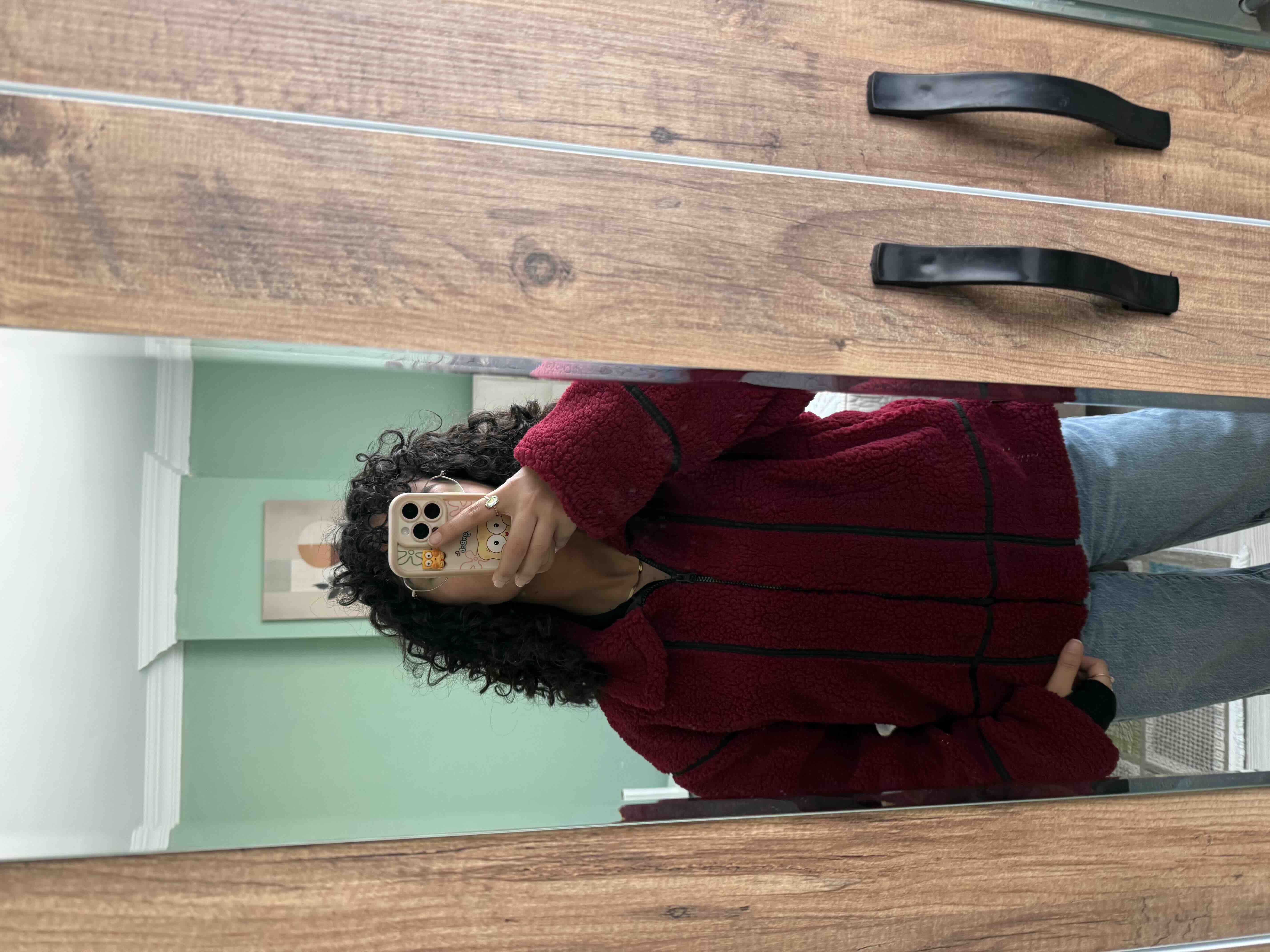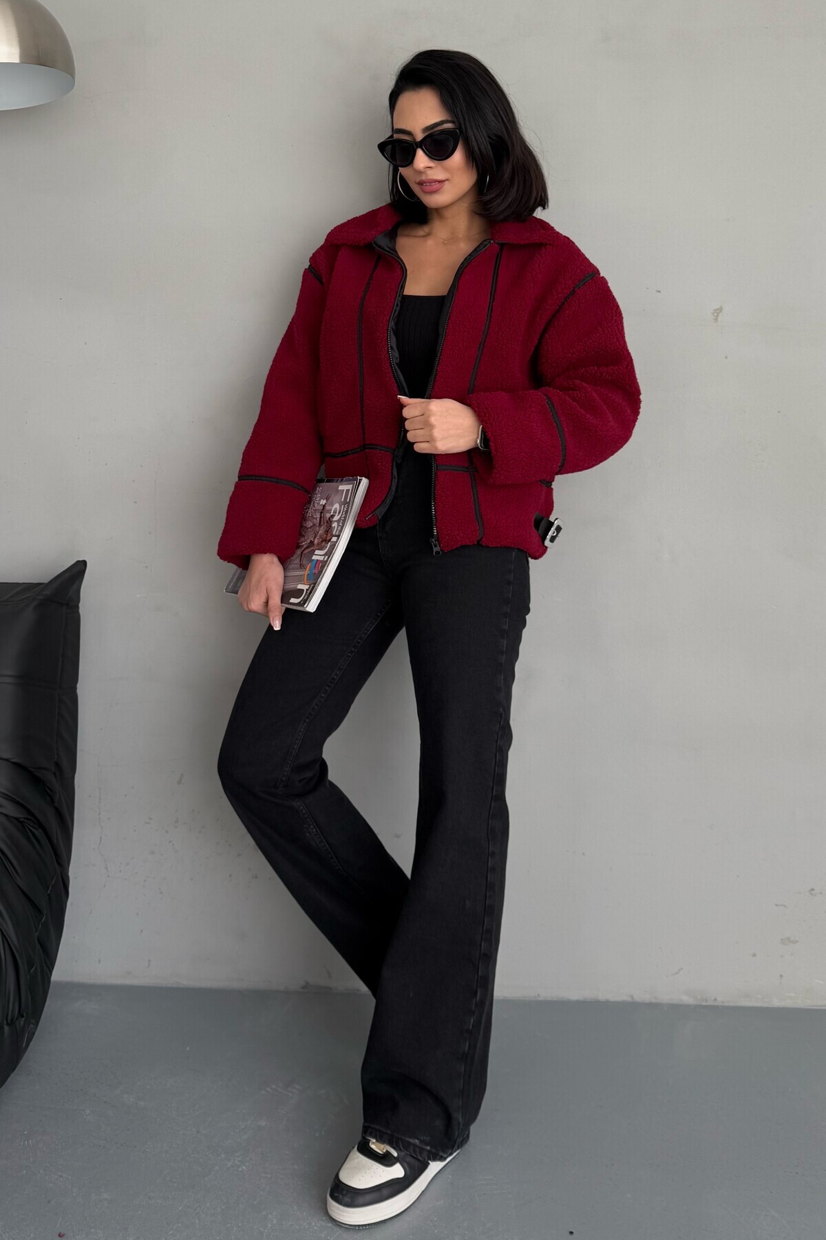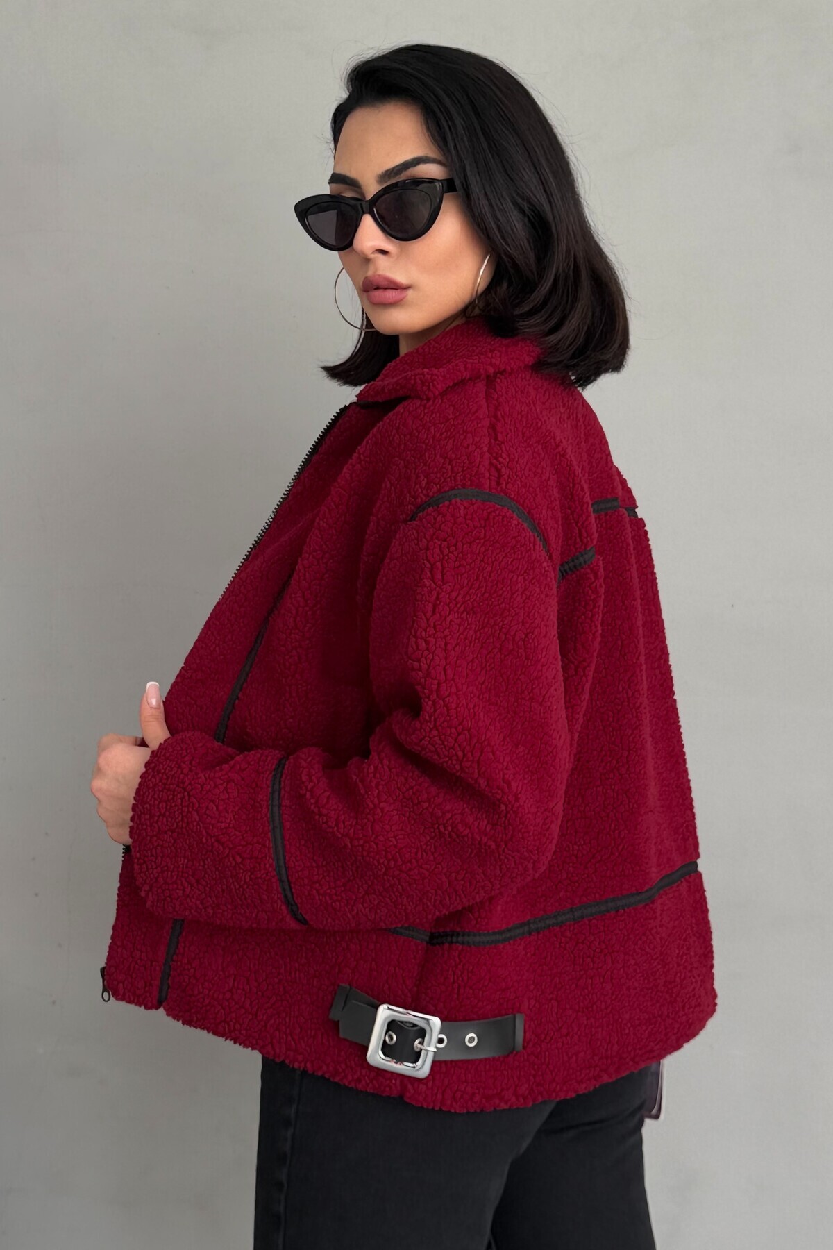 Deri Detaylı Bordo Peluş Kadın Ceket Deri Detaylı Bordo Peluş Kadın Ceket BKC0056 XL
