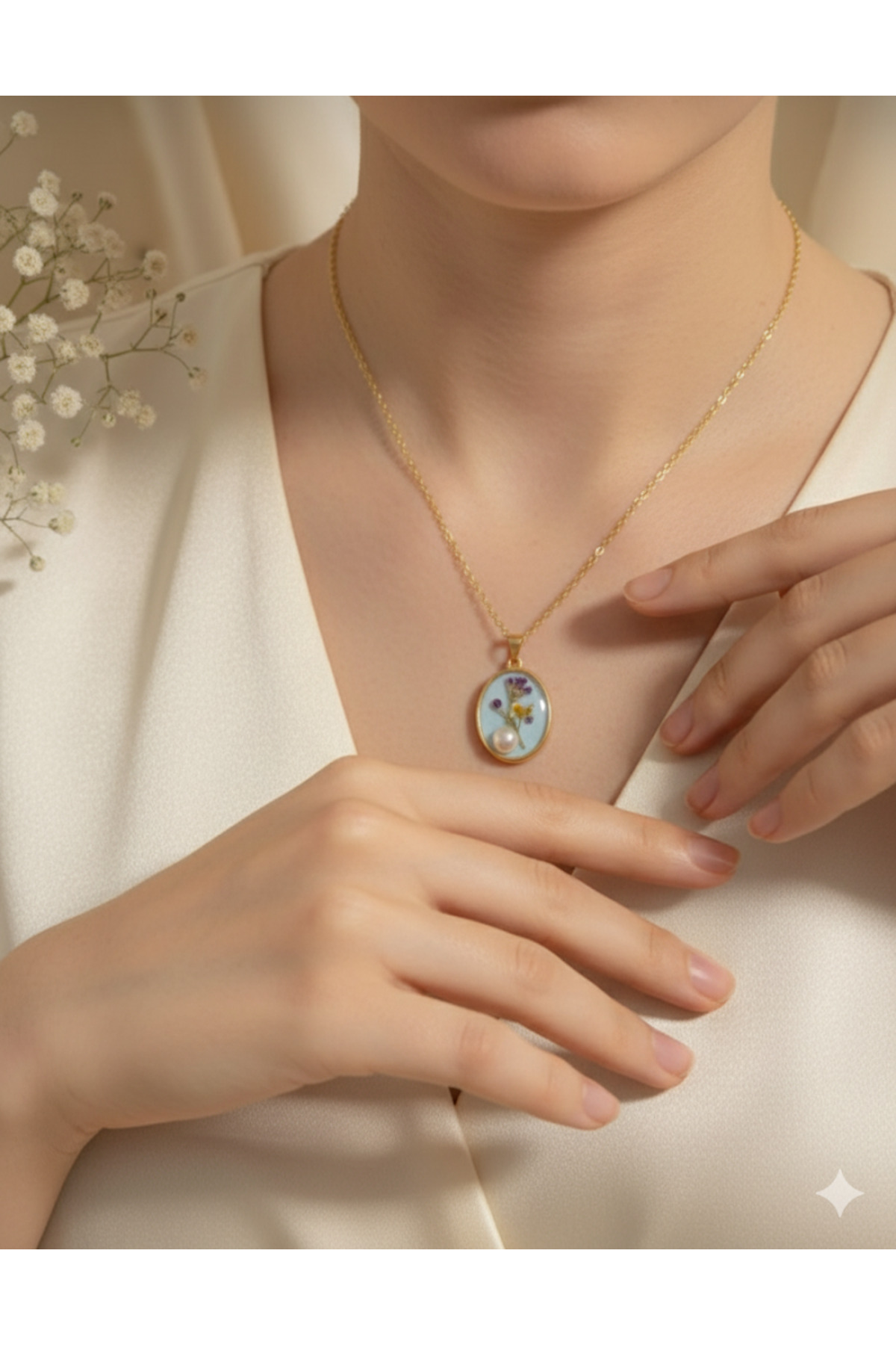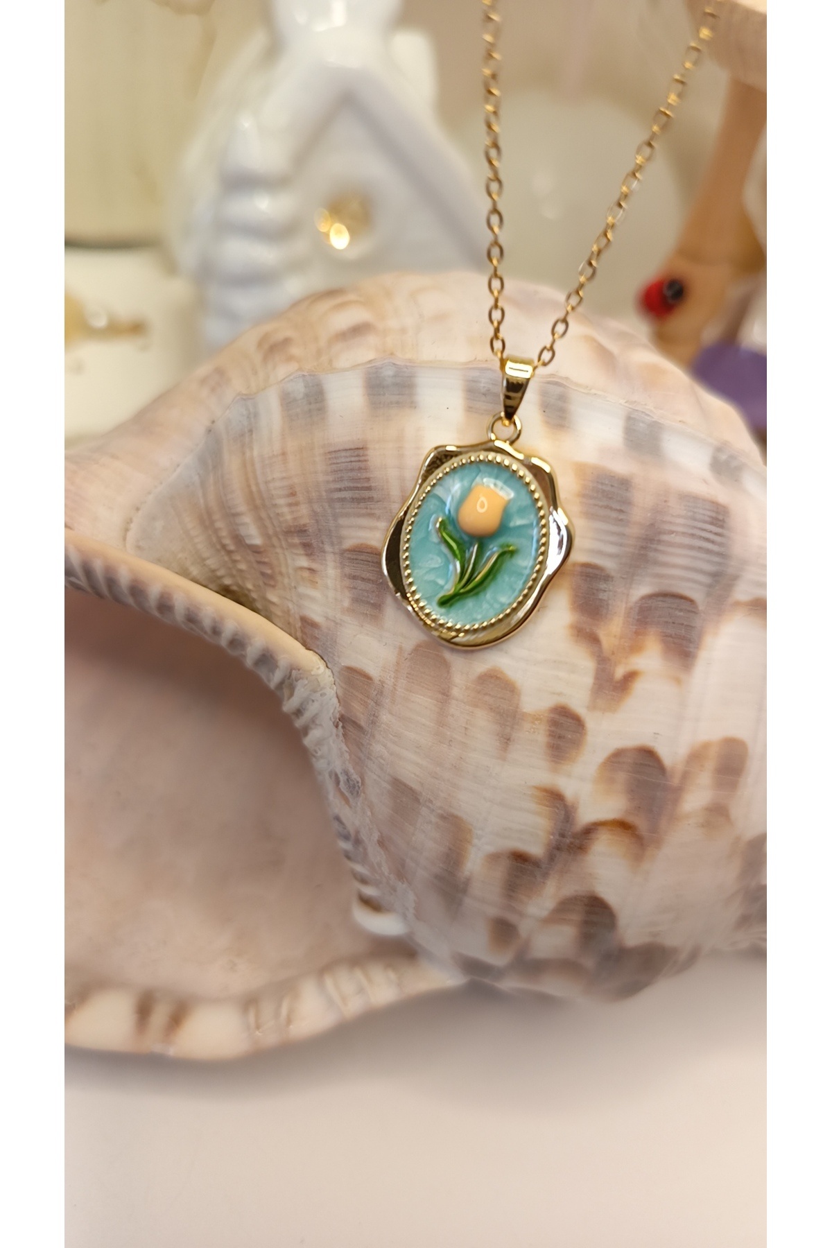 Çelik Vintage İncili Lale Detaylı Kolye Çelik Vintage İncili Lale Detaylı Kolye NLS17080210 45 cm