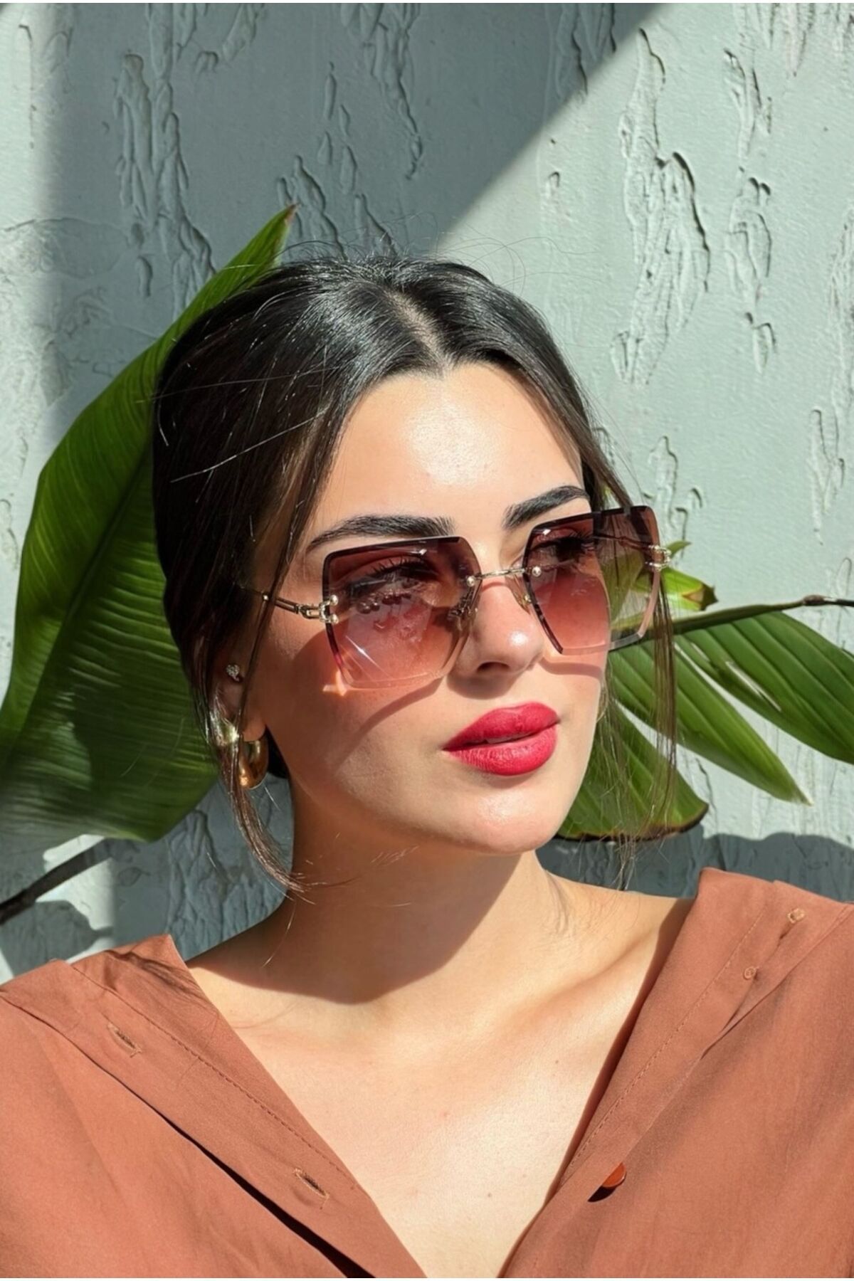 Geometrik Tasarım Pembe Cam Tasarım Kadın Güneş Gözlüğü Geometrik Tasarım Pembe Cam Tasarım Kadın Güneş Gözlüğü TH1834 تک سایز