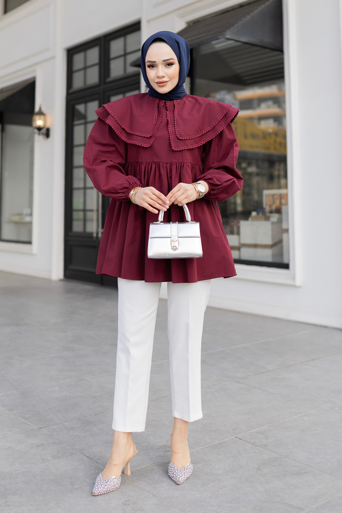 Kadın Çift Yaka Gupurlu Gömlek Bordo Kadın Çift Yaka Gupurlu Gömlek Bordo 182-0052 L/XL