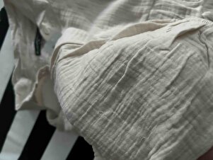 Kadın Krem Balon Kol Lastikli Eteği Volanlı Keten Gömlek ALC-X13507 Kadın Krem Balon Kol Lastikli Eteği Volanlı Keten Gömlek ALC-X13507 L