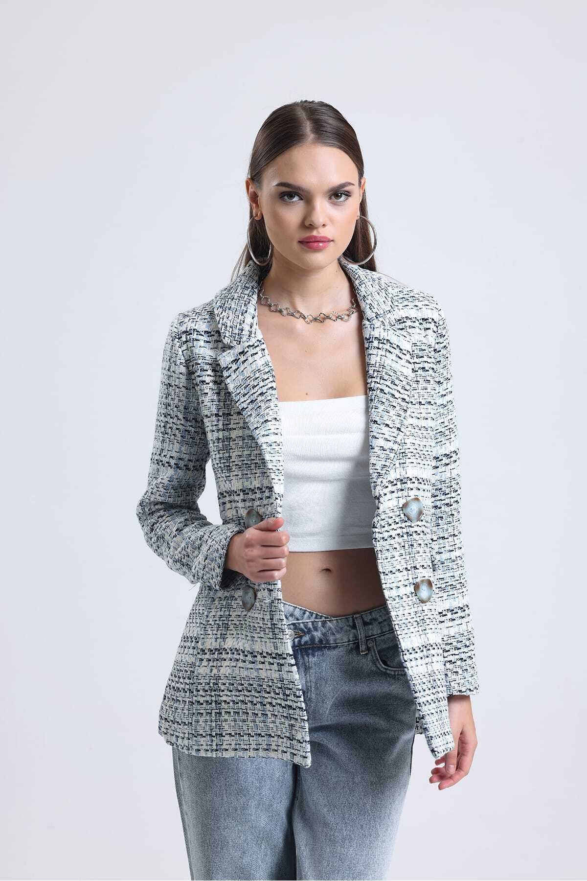 Kadın Tüvit Ceket Gold Düğme Detaylı Kadın Tüvit Ceket Gold Düğme Detaylı 19012019850 40