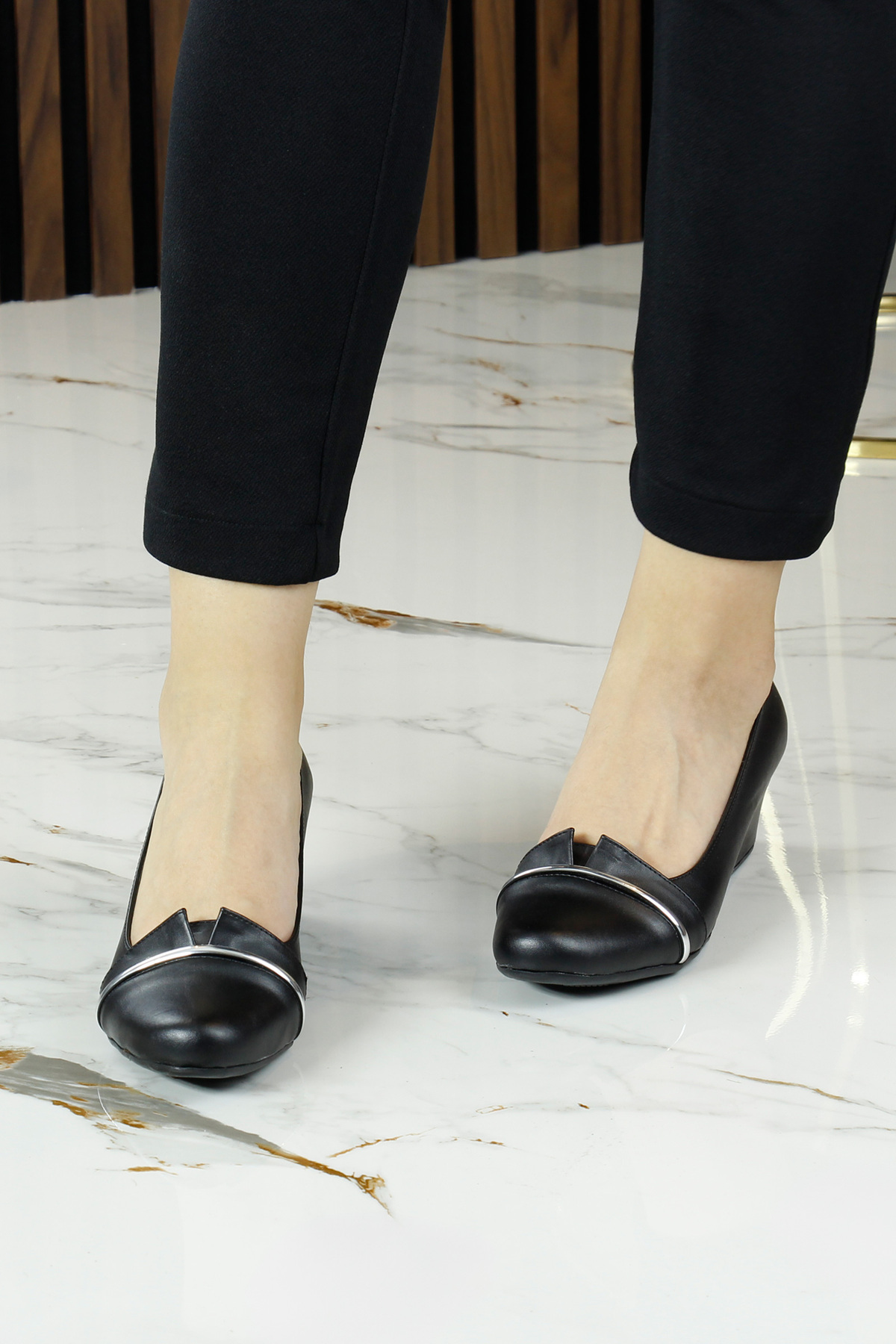 Colel Siyah Metal Detaylı Yuvarlak Burun Dolgu Topuklu Günlük Ayakkabı Colel Siyah Metal Detaylı Yuvarlak Burun Dolgu Topuklu Günlük Ayakkabı 37526S000119 40