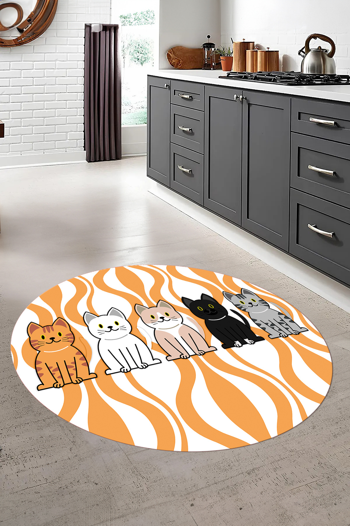 Dijital Baskılı Kedi Figürlü Yıkanabilir Kaymaz Taban Yuvarlak Salon Mutfak Halısı Dijital Baskılı Kedi Figürlü Yıkanabilir Kaymaz Taban Yuvarlak Salon Mutfak Halısı MUTFAK-Y-53 180 x 180