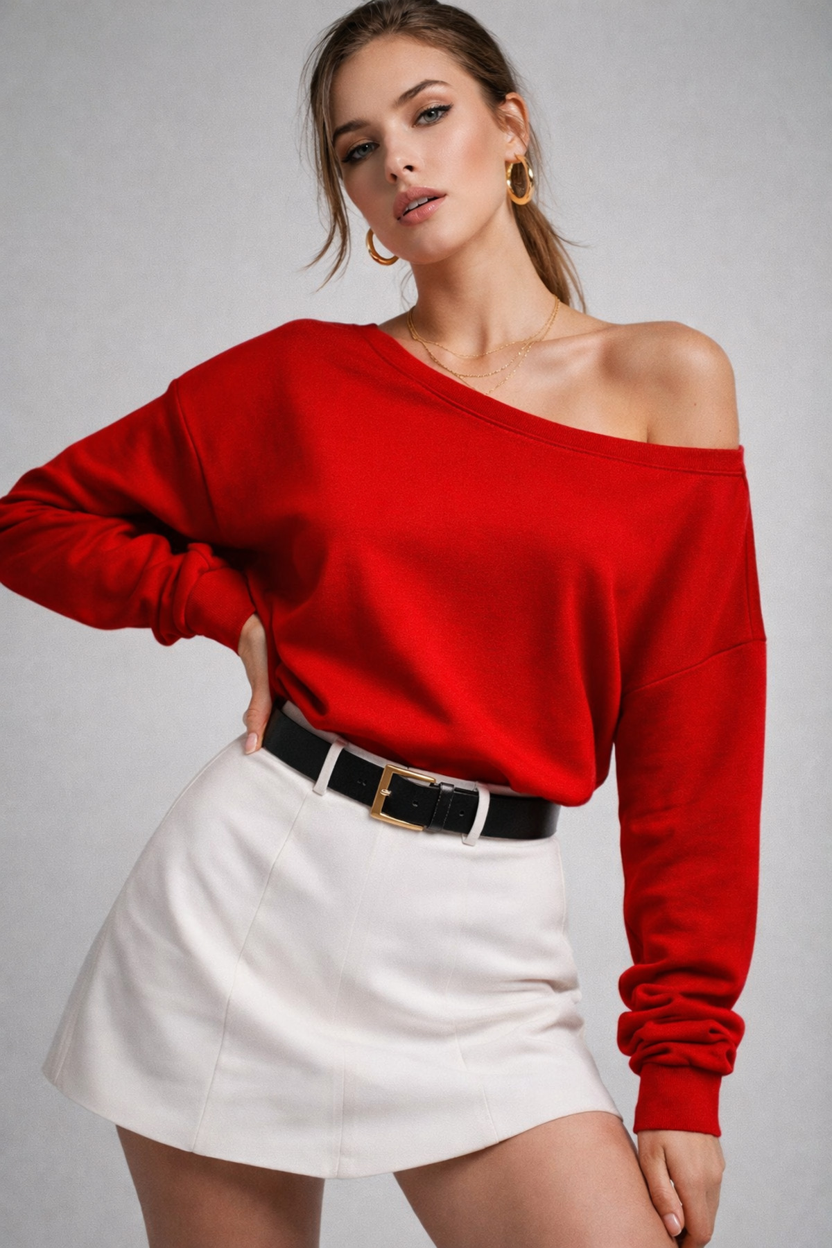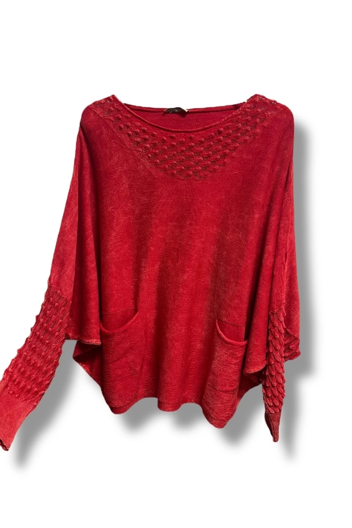 Kol ve yaka ajurlu pamuk triko bluz-kırmızı Kol ve yaka ajurlu pamuk triko bluz-kırmızı 2200092 Standart