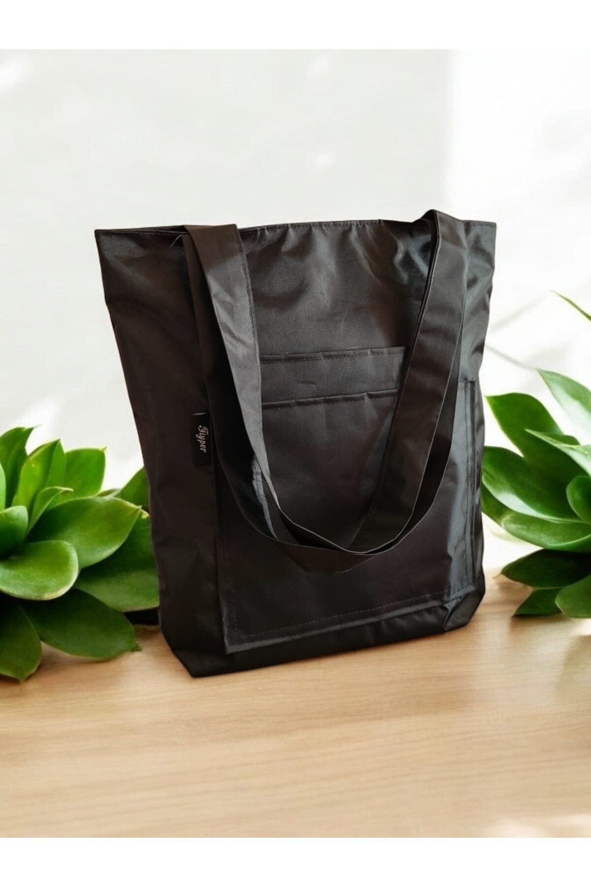Siyah Ön Cepli Saten Tote Çanta Siyah Ön Cepli Saten Tote Çanta YKN7296 Standart