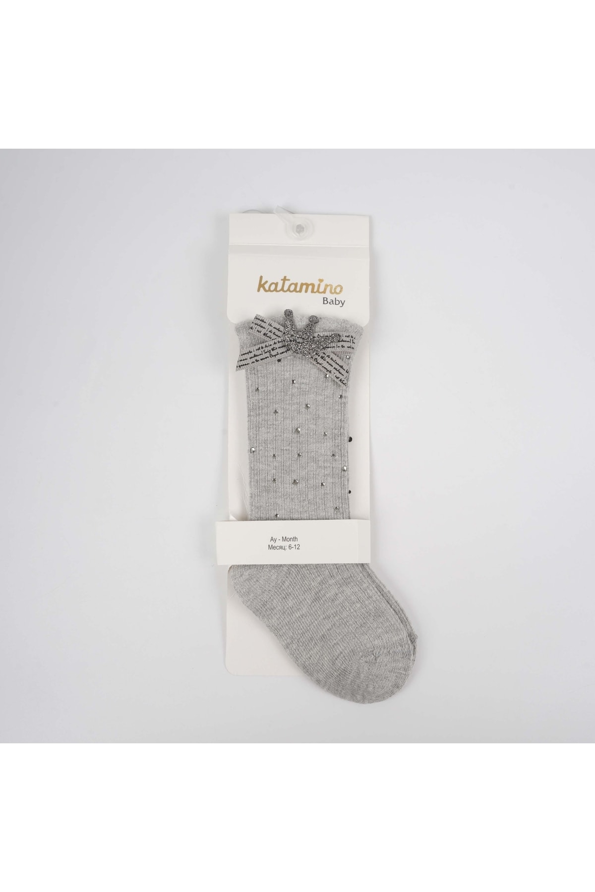 Ponponlu Tüllü Dizaltı Bebek Çorap Gri Ponponlu Tüllü Dizaltı Bebek Çorap Gri HTS0399 12-18 AY