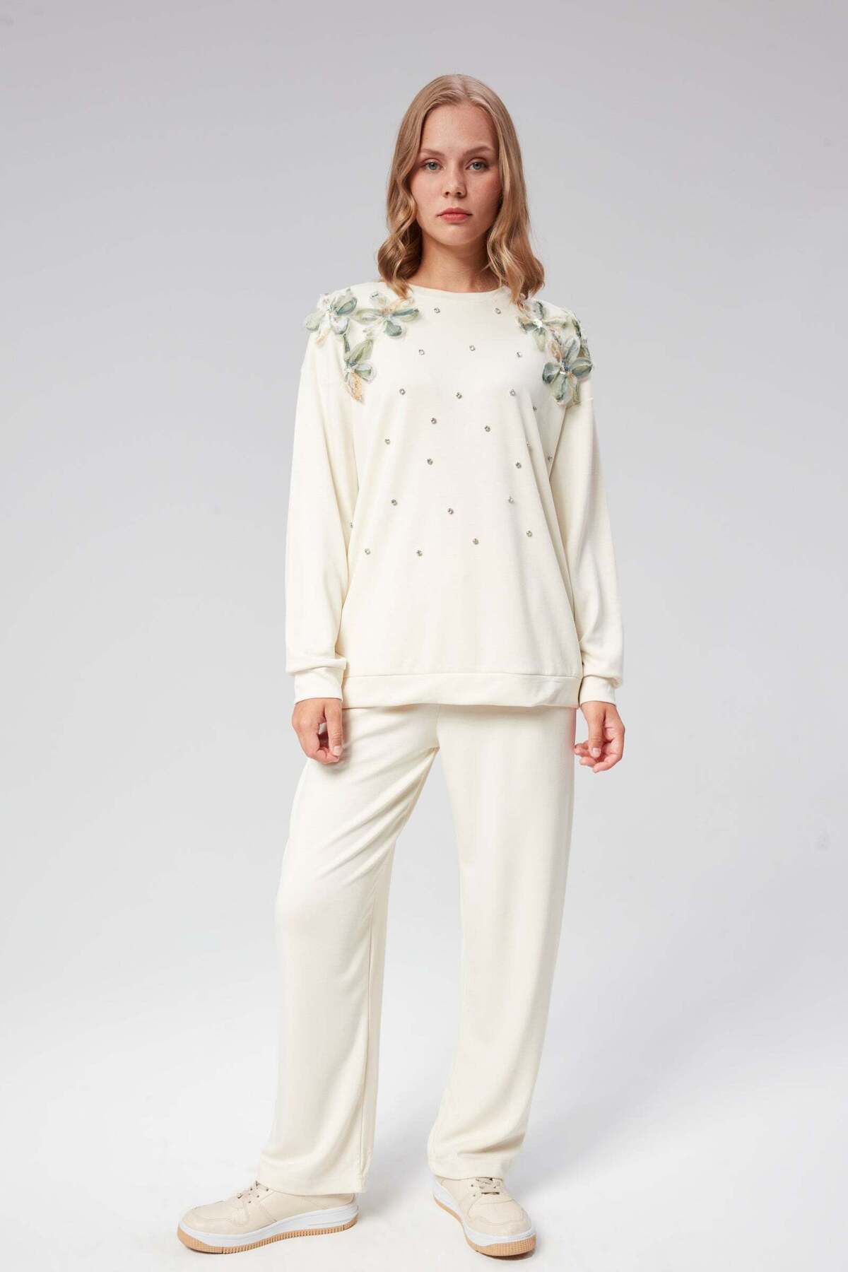 HatunAtila Kaz Ayak Desenli Triko İkili Takım Gül Rengi - 3028 HatunAtila Kaz Ayak Desenli Triko İkili Takım Gül Rengi - 3028 Standart