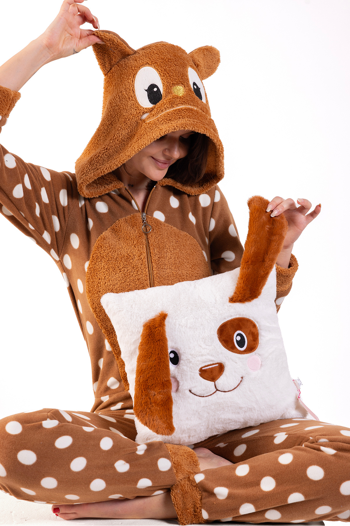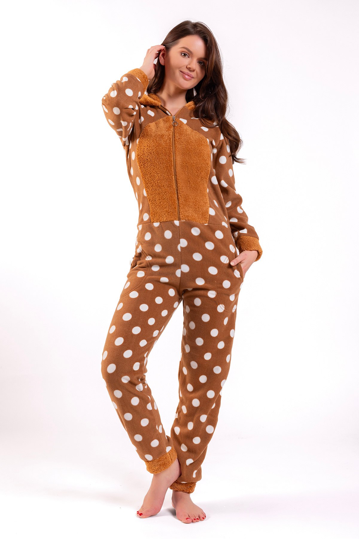 Kadın Kahve Ayıcık Puanlı Polar Tulum Kadın Kahve Ayıcık Puanlı Polar Tulum MM1029656 XL
