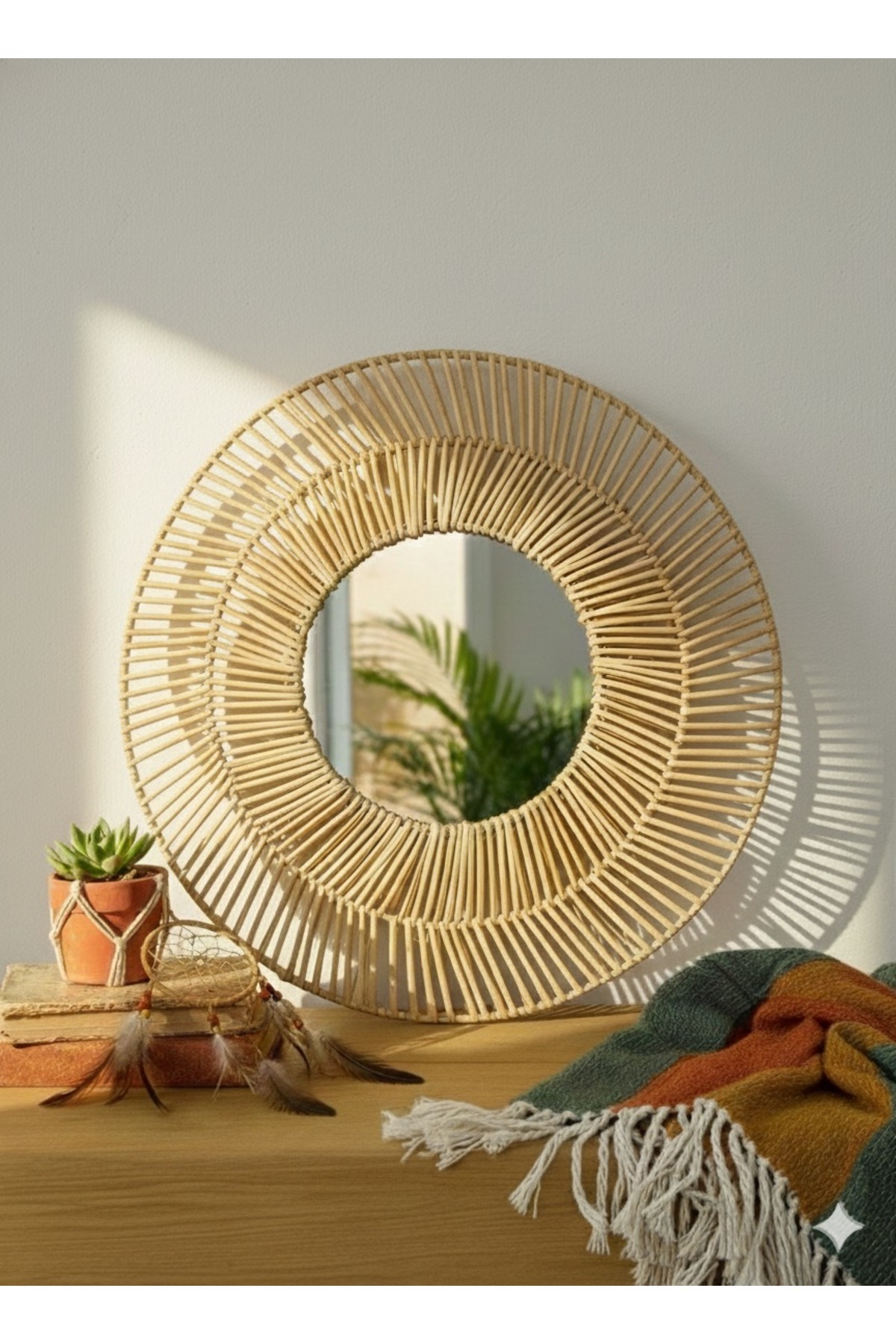 Dekoratif Rattan Duvar Aynası Dekoratif ayna bohem ayna Dekoratif Rattan Duvar Aynası Dekoratif ayna bohem ayna deko7 65 x 62