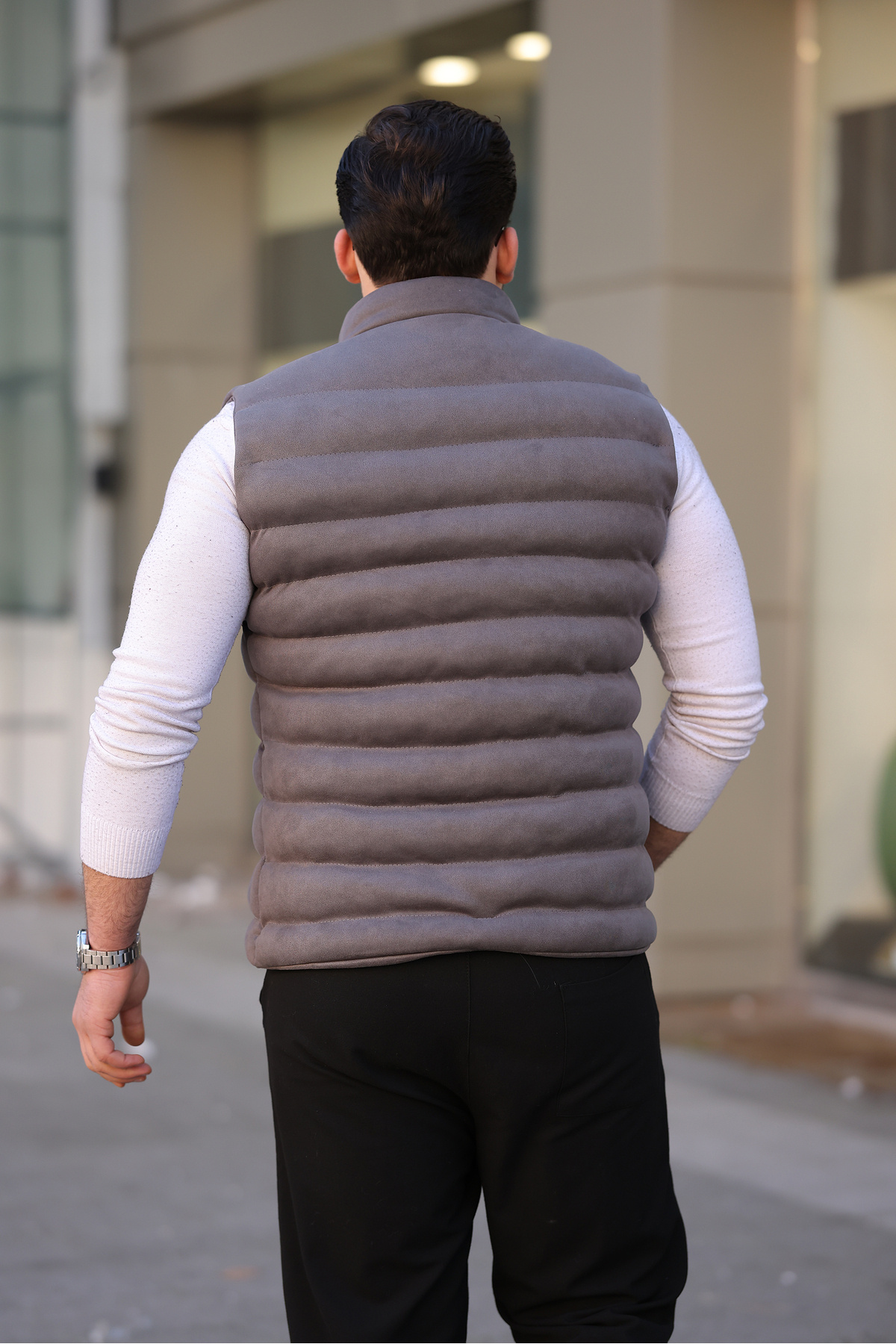 Erkek Gri Nubuk Süet Şişme Yelek Erkek Gri Nubuk Süet Şişme Yelek Mero-252 5XL